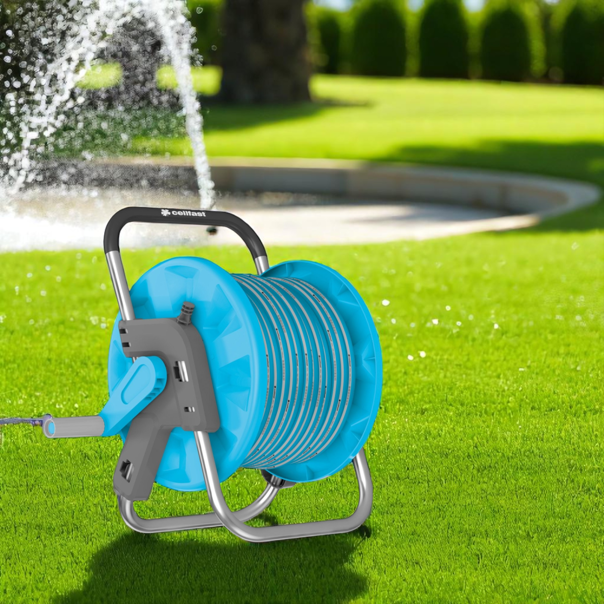 Az Aluplus tömlődob szett praktikus megoldást kínál kerti öntözéshez, egyszerű szállíthatóságával és gyors szerelhetőségével. A 20 méteres Cellpro kerti tömlő elegendő hatótávolságot biztosít, a tartozék locsolófej és csatlakozók pedig azonnal használhatóvá teszik a készletet. Az alumíniumszerkezet korrózióálló, mégis könnyű, így a tömlődob mozgatása nem jelent kihívást.