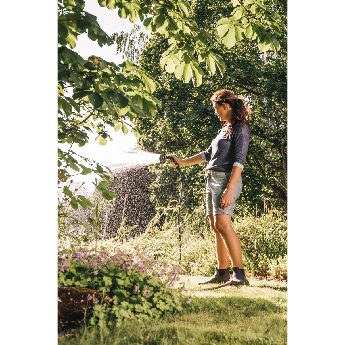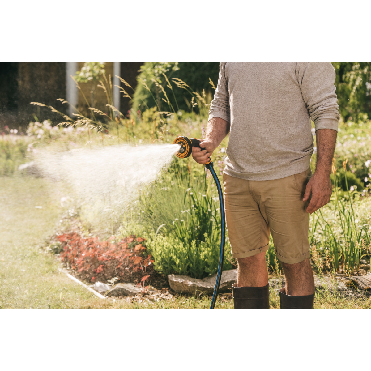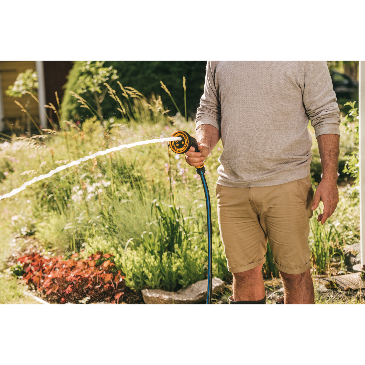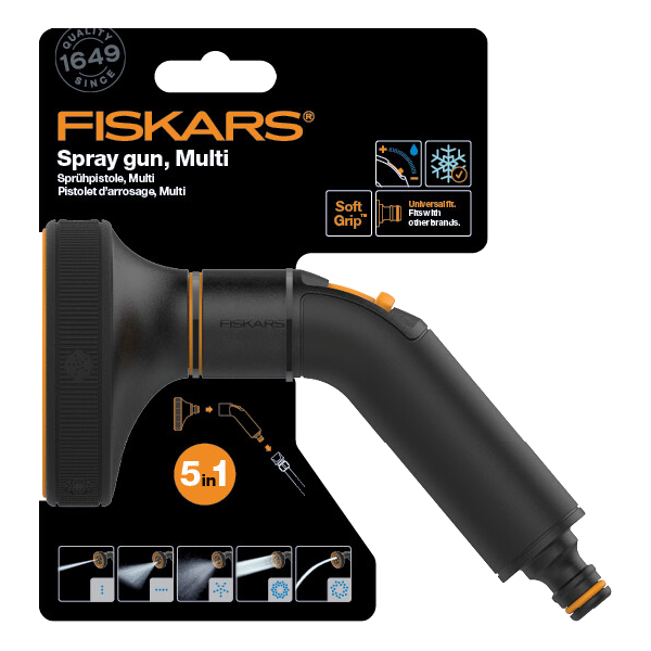 Öt finoman állítható locsolási mintázat, csavarja el a cserélhető SoftGrip öntözőfejet a finom permet, zuhany, lapos, öblítő vagy erős sugár mintázat kiválasztásához, a hüvelykujjas áramlásszabályozó ki/be kapcsoló, ergonomikus és fokozatmentesen szabályozható. Ellenáll a fagynak és alacsony hőmérsékleten melegebb marad, mint a fém öntözőfejek, továbbá univerzális csatlakozóval rendelkezik, így más márkákkal is kompatibilis.
