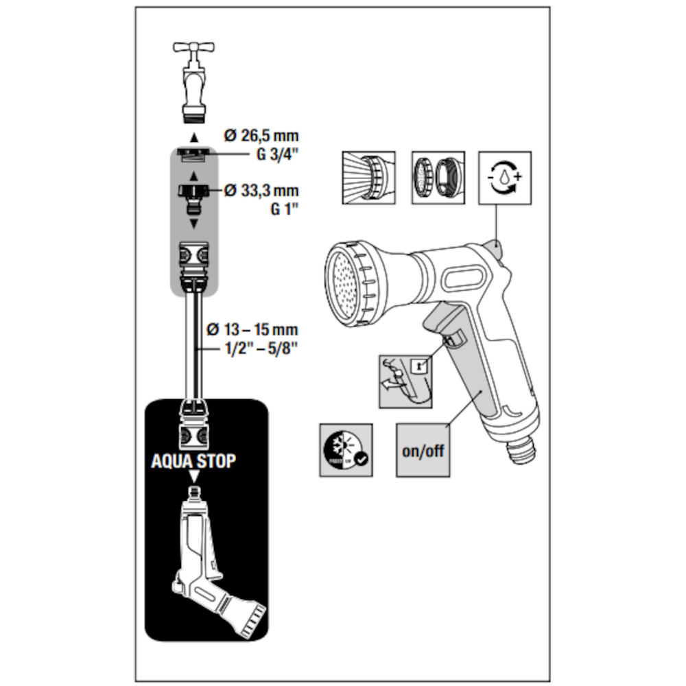 Ez a praktikus öntözőfej készlet ideális választás kezdőknek és haladóknak egyaránt, hiszen tartalmazza az öntözéshez szükséges összes alapvető csatlakozót és egy ergonomikus kialakítású öntözőfejet. A szórófej lágy vízsugara kíméletes a növényekhez, míg a fokozatmentes vízszabályzás és a rögzíthető kapcsoló kényelmes kezelést biztosít.