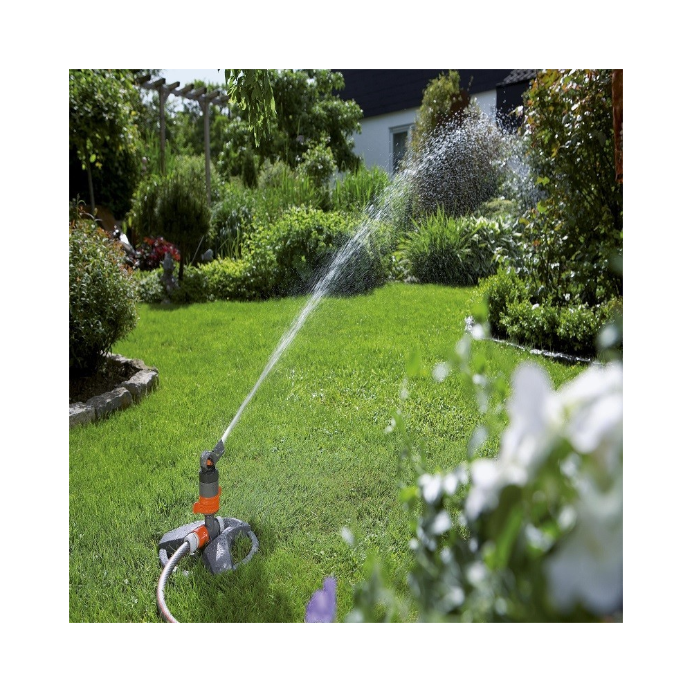 A GARDENA Comfort turbinás esőztető segítségével csendesen öntözheti gyepét. Erős műanyag kivitelének köszönhetően az eszköz működése alig jár zajjal. A szennyeződésálló turbinameghajtást szabadalom védi. A halk működésű eszköz a 2 zónás esőztetés és a speciális kialakítású vízterelő jóvoltából egyenletes vízelosztást biztosít. A speciális elhelyezésű állítógyűrűkkel könnyedén elvégezhető a finomfokozatú szektorbeállítás 20° és 360° között. Az állítógyűrűkről bármikor megállapítható, milyen szektor van kiválasztva. A hatótáv a könnyen használható, nagy forgatógombbal állítható be az 5-12 m tartományban. Az eszközzel 75 m2 és 450 m2 közötti felület öntözhető. A szennyeződést felfogó finomszűrő könnyen kivehető és tisztítható. Az esőztetőt tartó műanyag talp a három fémbetétnek köszönhetően nagyon erős felépítésű, ami nagy stabilitás biztosít álló helyzetben. Az esőztetőt csatlakoztatásra kész kiszerelésben szállítjuk, GARDENA rendszercsatlakozóval és zárósapkával, így azonnal használatba vehető a kert öntözésére. A szennyeződést felfogó finomszűrő könnyen kivehető és tisztítható. Ha nagyobb felületet szeretne öntözni, kapcsoljon össze több esőztetőt a GARDENA csapelem segítségével. A kert kényelmes öntözéséhez.