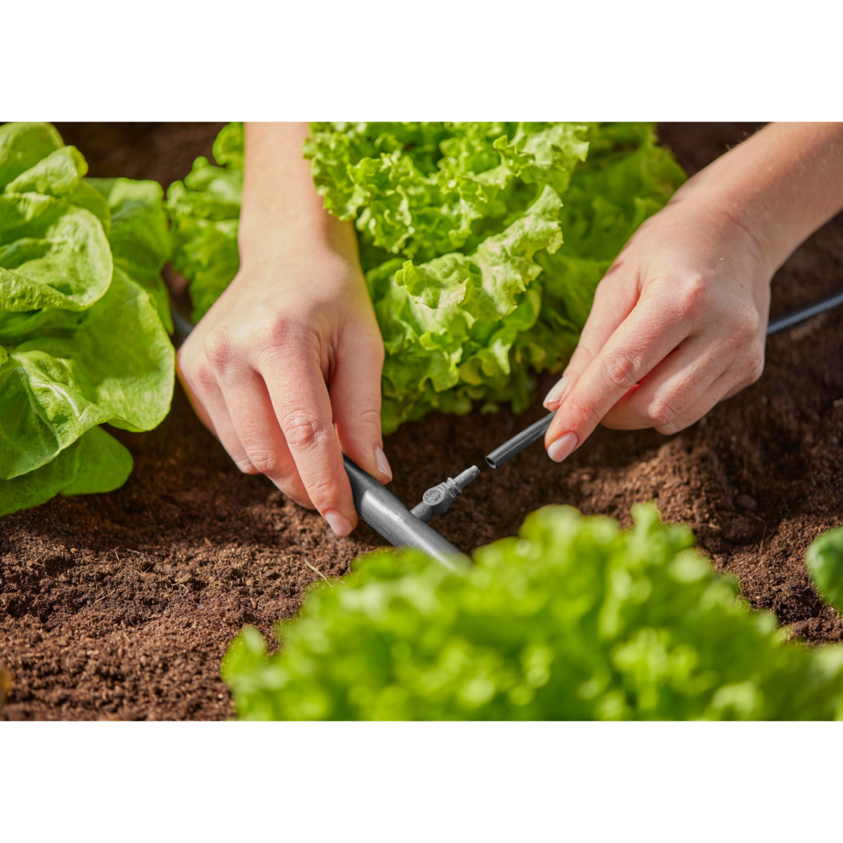 A Gardena kötőelem tökéletes választás, ha Micro-Drip öntözőrendszered csöveit gyorsan és egyszerűen szeretnéd összekapcsolni vagy meghosszabbítani a kertben.