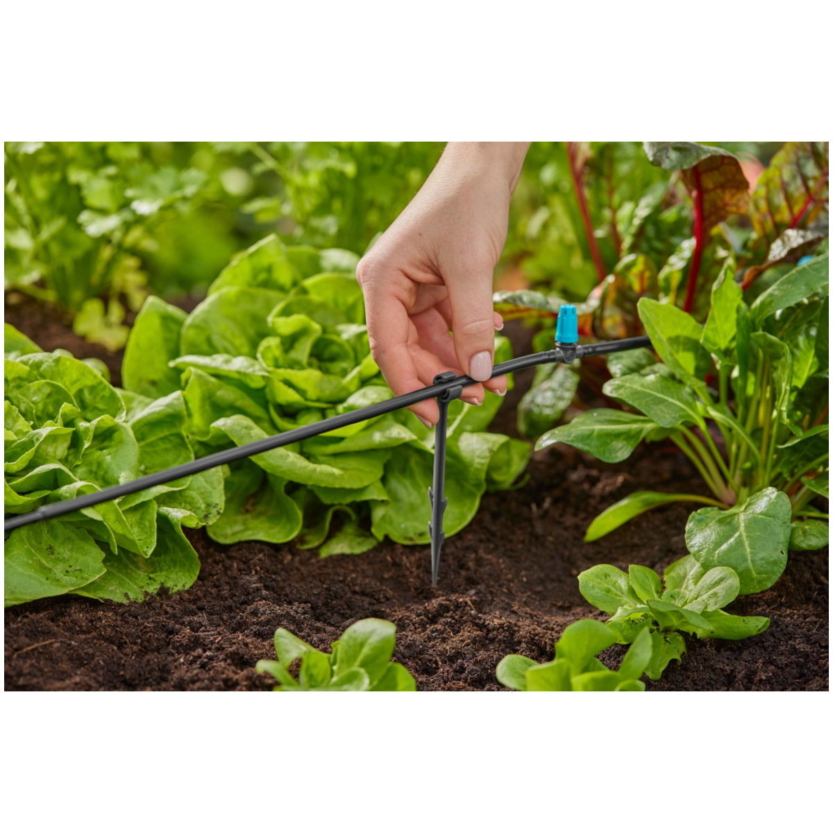 A GARDENA 4,6 mm-es (3/16") leszúrótüske praktikus megoldást kínál a Micro-Drip-System elosztó- és csepegtetőcsöveinek rögzítéséhez és vezetéséhez. Segítségével a csövek stabilan a talajhoz rögzíthetők, így az öntözőrendszer pontosan a kívánt helyen marad.