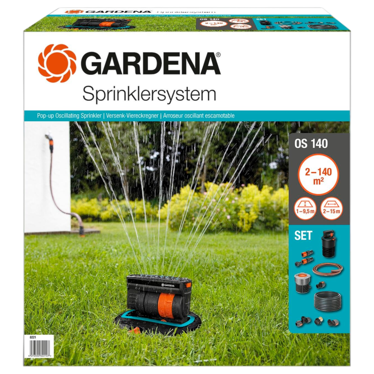 A GARDENA OS 140 süllyesztett négyszögesőztető készlet praktikus megoldást kínál négyzet és téglalap alakú kertrészek egyenletes öntözésére. A talajszint alá telepíthető kialakítás diszkréten illeszkedik a kertbe, használaton kívül szinte láthatatlan. A rendszer különböző méretű területekhez igazítható, így kisebb és nagyobb gyepfelületek öntözésére is alkalmas.