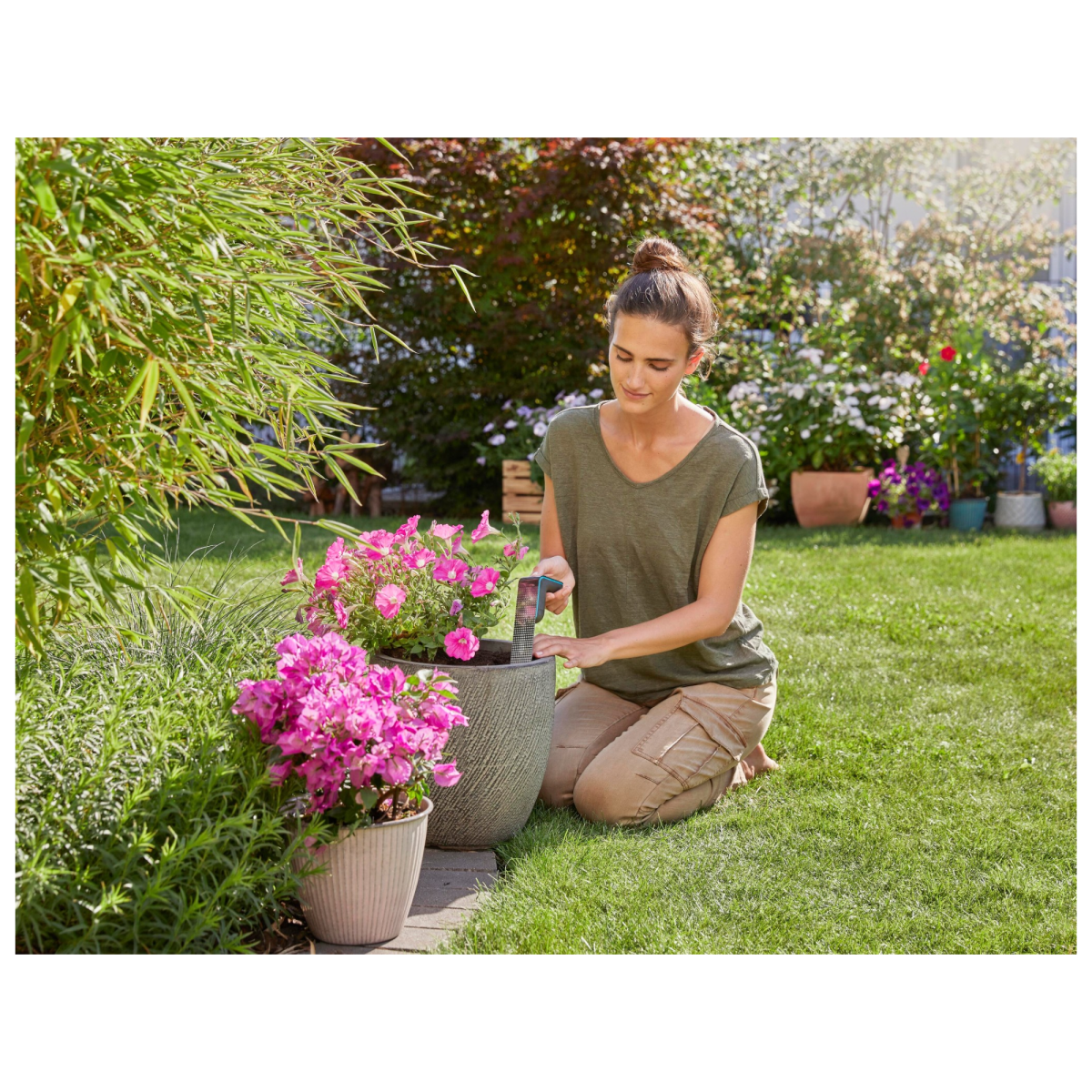A GARDENA smart talajnedvesség-érzékelő segít abban, hogy kerted mindig a megfelelő mennyiségű vizet kapja. A készülék folyamatosan méri a talaj nedvességtartalmát és hőmérsékletét, az adatokat pedig a GARDENA smart App-on keresztül jeleníti meg. Az érzékelő a smart rendszer részeként az öntözésvezérlővel együttműködve csak akkor indít öntözést, amikor arra valóban szükség van.
