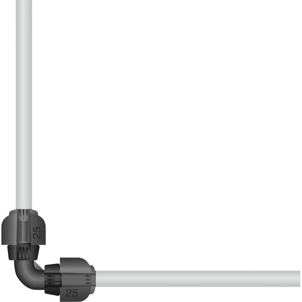 Az SP L-elem 25 mm tökéletes választás, ha egyszerűen szerelhető és jól illeszthető megoldást keresel az öntözőrendszered irányváltásaihoz.