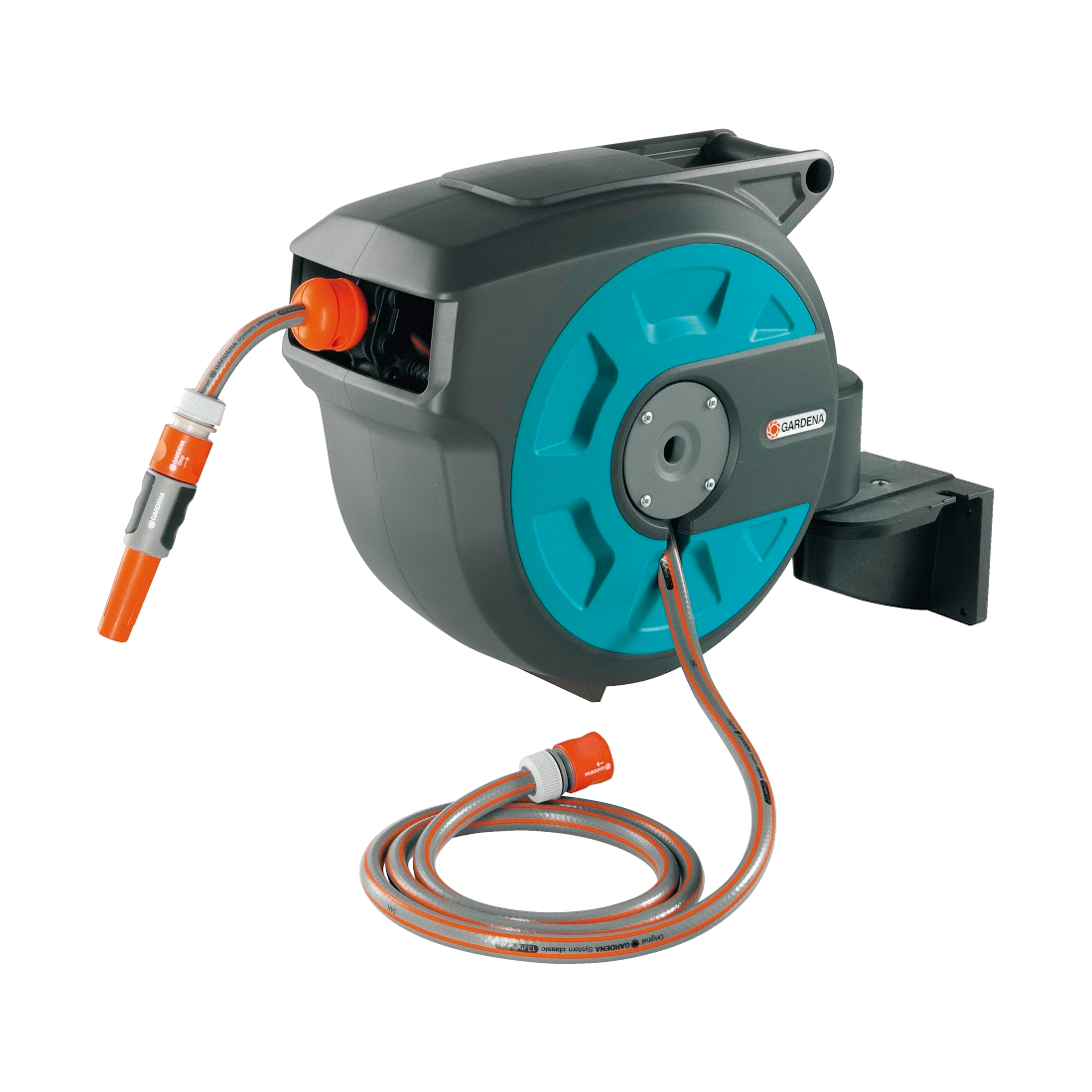 A GARDENA Comfort fali tömlődoboz 15 roll-up automatic különösen egyszerűvé és kényelmessé varázsolja az öntözést. A tömlődoboz automatikusan visszatekeri a tömlőt Ön helyett. A praktikus tömlődoboz falra szerelhető, 180°-ban elforgatható. A tömlő egy rövid rántással kényelmesen visszatekerhető, és max. 50 cm-ként megállítható. A nagy vízátfolyású 13 mm-es (1/2"-os) minőségi tömlő optimális öntözési feltételeket biztosít. A tömlő rövid rántásával a zár kiold, és a roll-up automatikának köszönhetően a tömlő feltekeredik a tömlődobozba hajlongás és tekergetés nélkül, így nem lesz többé piszkos a keze. A tömlő hosszúságához igazított beépített acél rugók egyenletes és nagy erejű visszahúzást biztosítanak. A tömlővezető megakadályozza a tömlők csavarodását és tekeredését. A tömlődoboz használata után a csatlakozótömlőt az utáncsepegés-gátlóra lehet csatlakoztatni, mely megakadályozza a víz használat utáni kifolyását. További előnyök: locsolókat, öntözőket, mosókeféket tud tárolni a praktikus tárolókon. Télen az ergonomikus hordozófogantyú segítségével a tömlődoboz egyszerűen levehető a tartóról, hogy fagymentes helyen lehessen tárolni. A fali tömlődoboz készre szerelt állapotban: 15 m minőségi tömlővel, 2 m csatlakozótömlővel, locsolóval, és a szükséges eredeti GARDENA rendszerelemekkel: három csapelemmel, egy tömlőelemmel és egy vízstopos tömlőelemmel. A csomagban található fali tartó csavarokkal, tiplikkel és szerelési segédlettel a falra szerelés nagyon egyszerű.