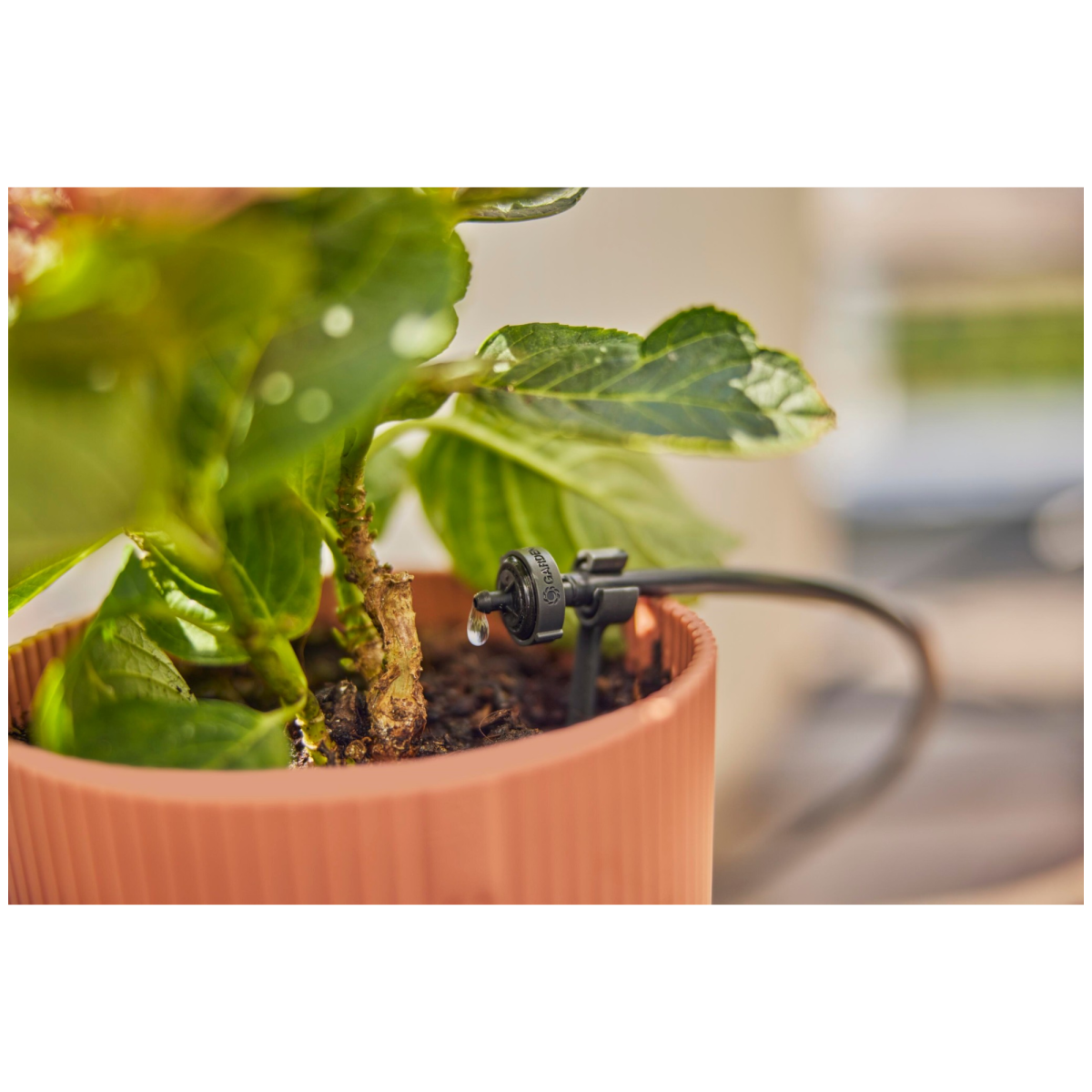 A Gardena Micro-Drip nyomáskiegyenlítős végcsepegtető megbízható megoldást kínál az egyes növények célzott és víztakarékos öntözéséhez. A csepegtető a 4,6 mm-es elosztócső végére szerelhető, így a víz közvetlenül a növény gyökeréhez jut.