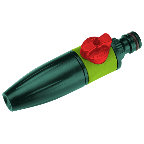 VERTO kerti locsolófej elzárható vízáramlás. A szabályozható fej lehetővé teszi a vízsugarat vízpermet és erős vízsugár között állítani.