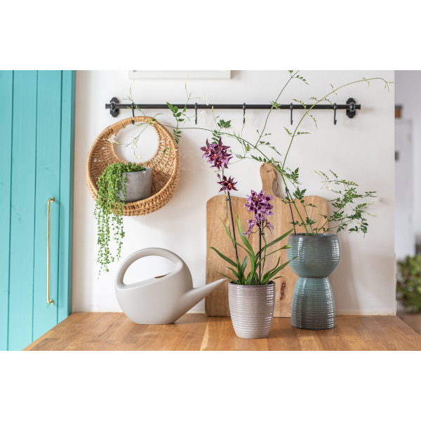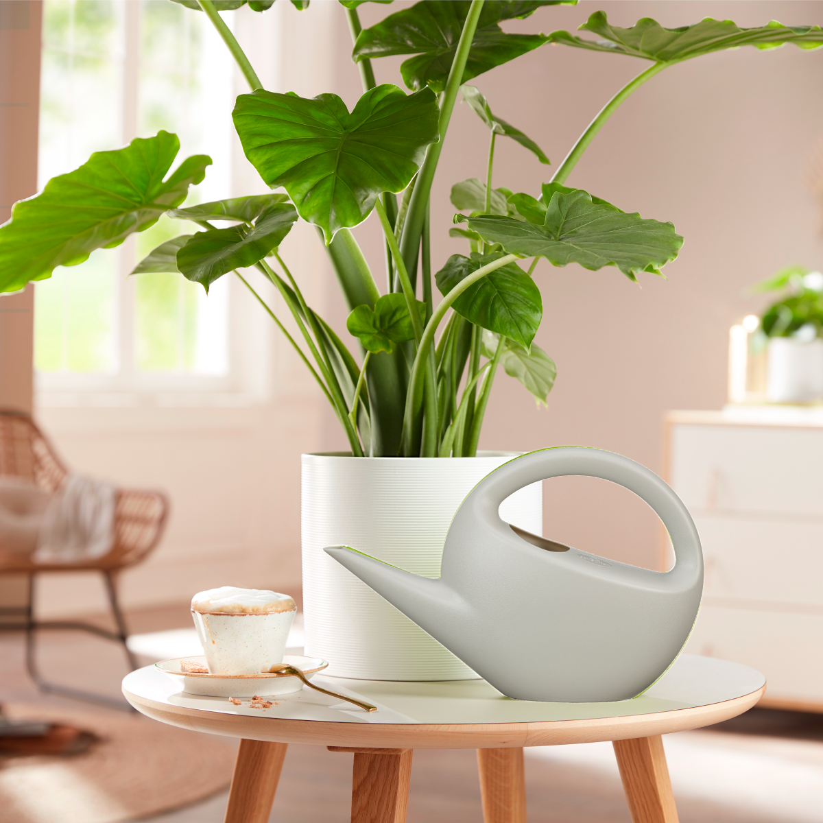 Divatos, modern formatervezésű, ergonomikus kialakítású locsolókanna. Matt felületű, műanyagból készült, tóp színű. 1,6 literes térfogattal. A kép csak illusztráció.