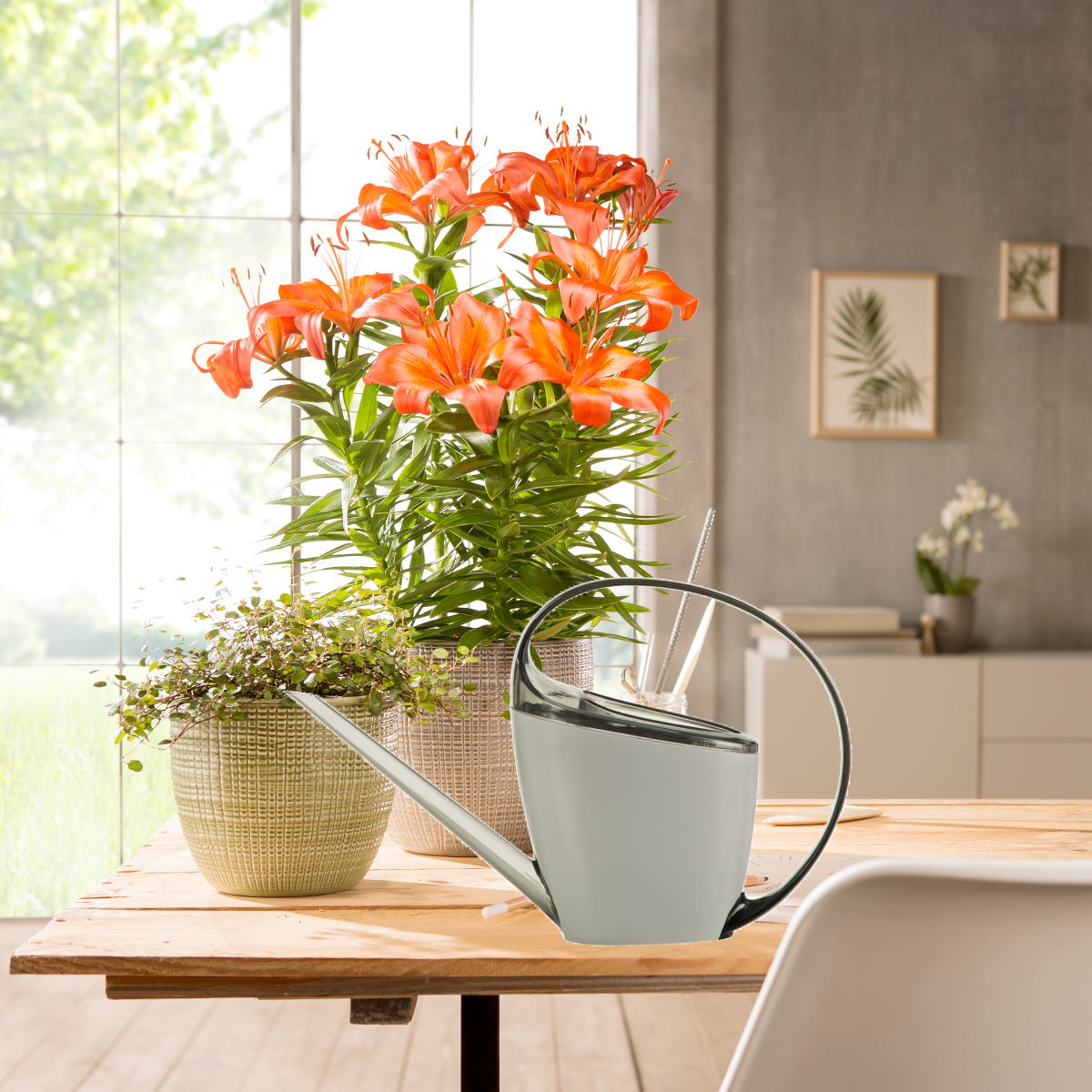 Műanyagból készült "Loop" öntözőkanna könnyű, mégis erős. Tökéletes mindennapi használatra a kertben, az erkélyen vagy a teraszon. A kiváló minőségű kidolgozás hosszú élettartamot biztosít, és megbízható társsá teszi a növényápoláshoz. Szürke színű, nagy méretű töltőnyílással. A hosszú, keskeny csővég célzott öntözést tesz lehetővé.