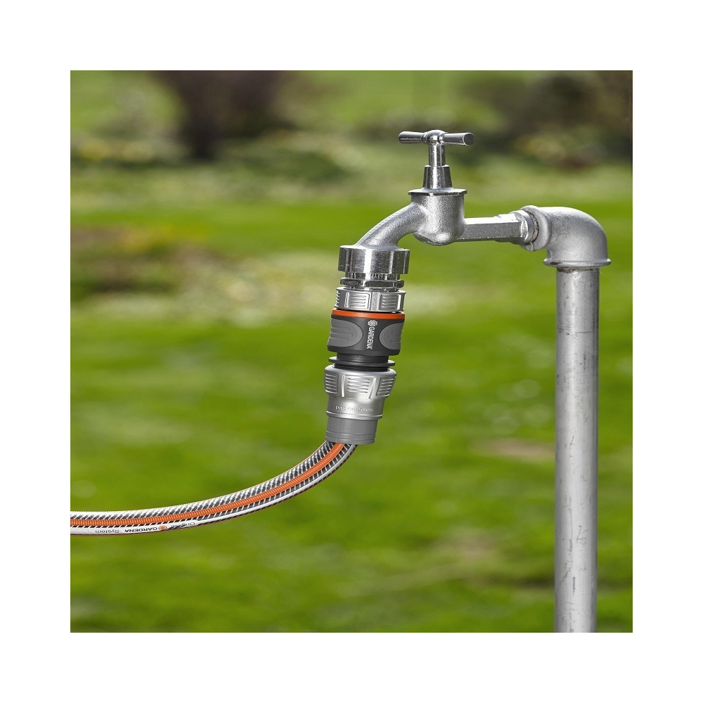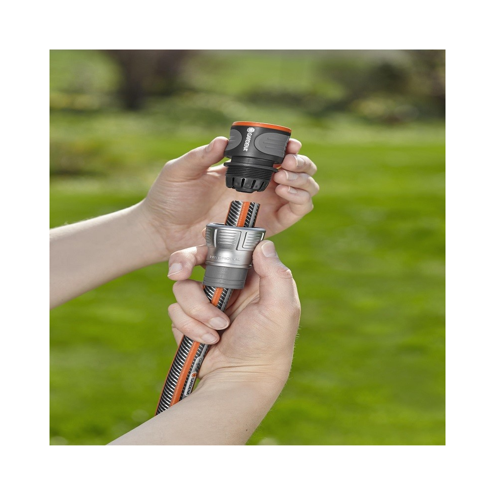 Modern és igényes kivitel, puha, műanyag rovátkolt fogófelület. Nagyon szoros illeszkedés a stabil, minőségi fémből készült tömlőfoglalatnak köszönhetően, beépített csavarodáselleni védelemmel.