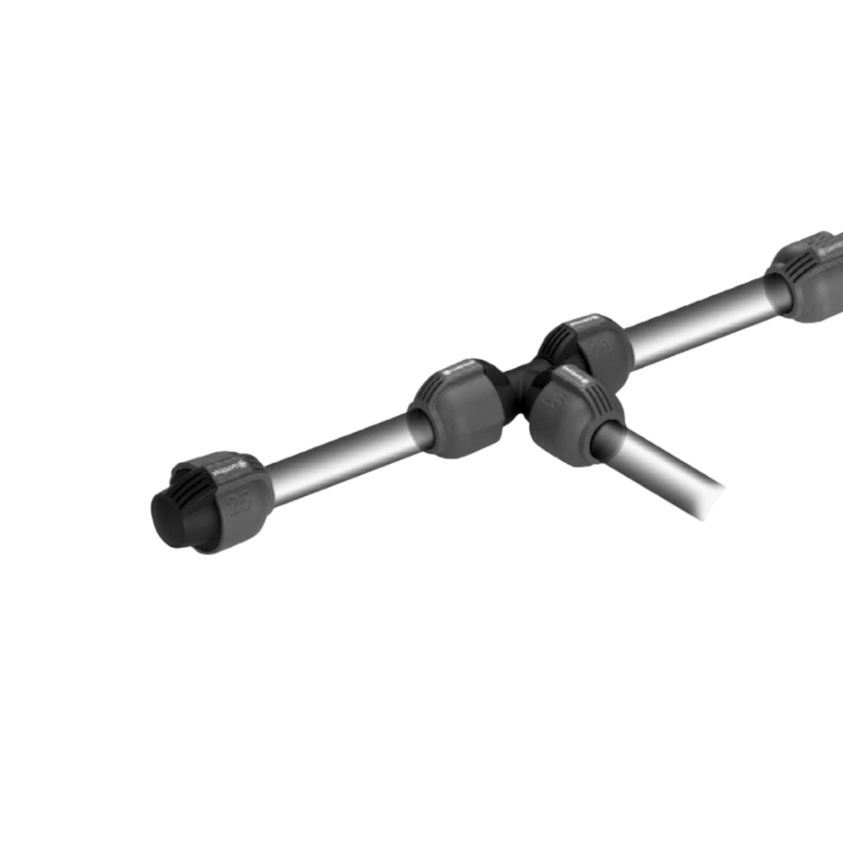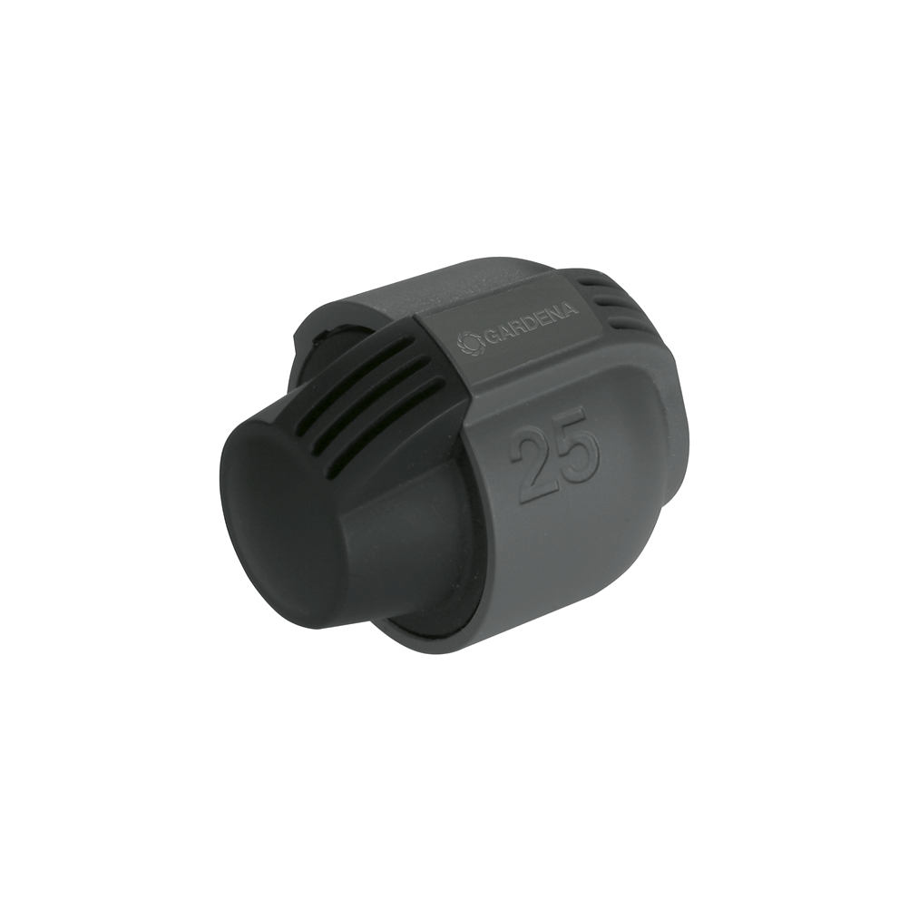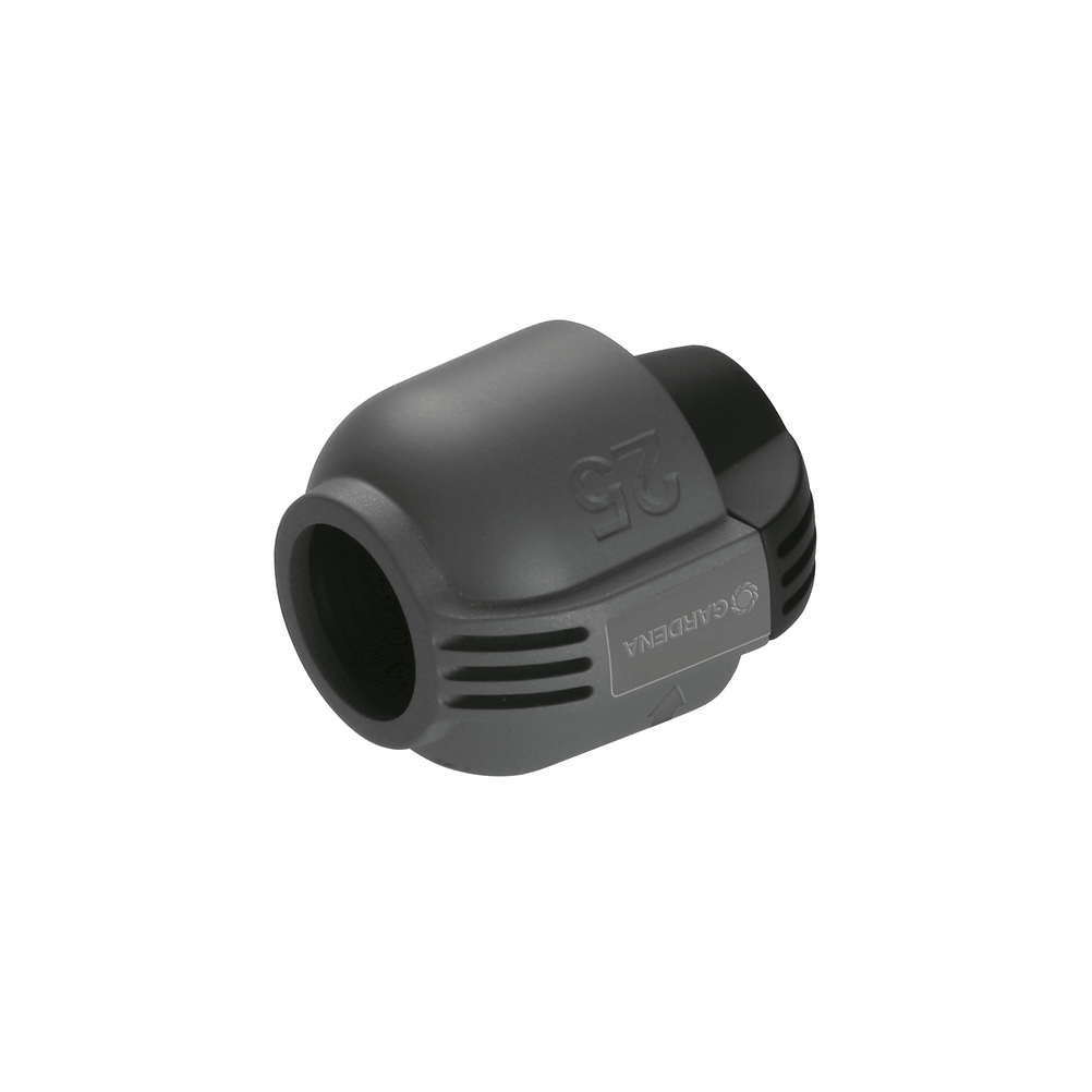A Gardena Sprinklersystem részét képező 25 mm-es záróelemmel megbízhatóan lezárható a vezetékcső. A szabadalmaztatott "Klikk és Kész" gyorscsatlakozási technológiának köszönhetően az össze- és szétszerelés egyszerűen, szerszám nélkül történik, csupán a csavaros csatlakozást kell 140°-kal elforgatni.