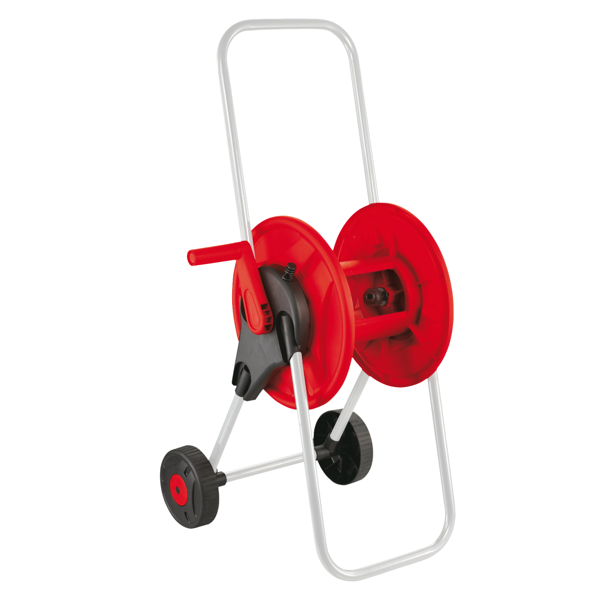 Tömlő kocsi - Acélcső váz - Műanyag kerék, tömlő dob és kerék - Kb. 45 m 12,5 mm-es (1/2") tömlő tárolására alkalmas - Magassága: kb. 75 cm - Tömlő nélkül értékesítjük!