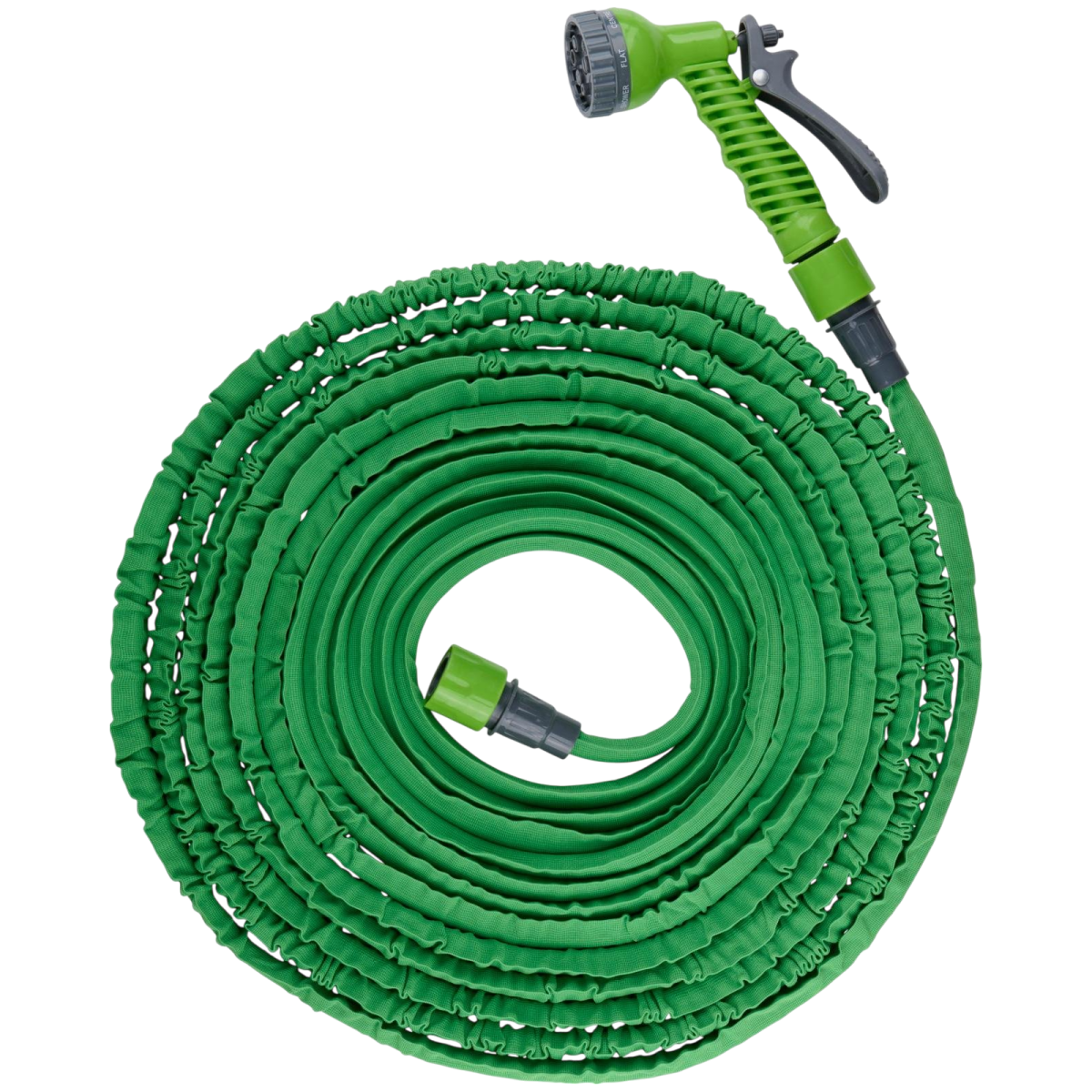 Ez a 4 részes, rugalmas kerti tömlőszett ideális választás mindazoknak, akik helytakarékos, könnyen kezelhető locsolási megoldást keresnek. A tömlő víznyomás hatására akár 15 méter hosszúságig is megnyúlik, majd használat után automatikusan visszahúzódik eredeti méretére, így tárolása egyszerű és kompakt.