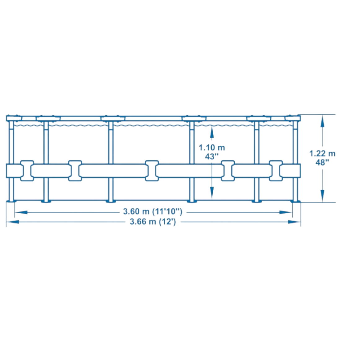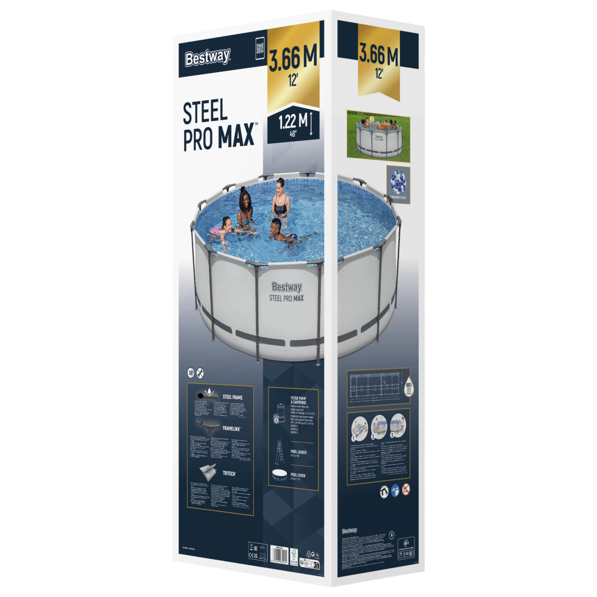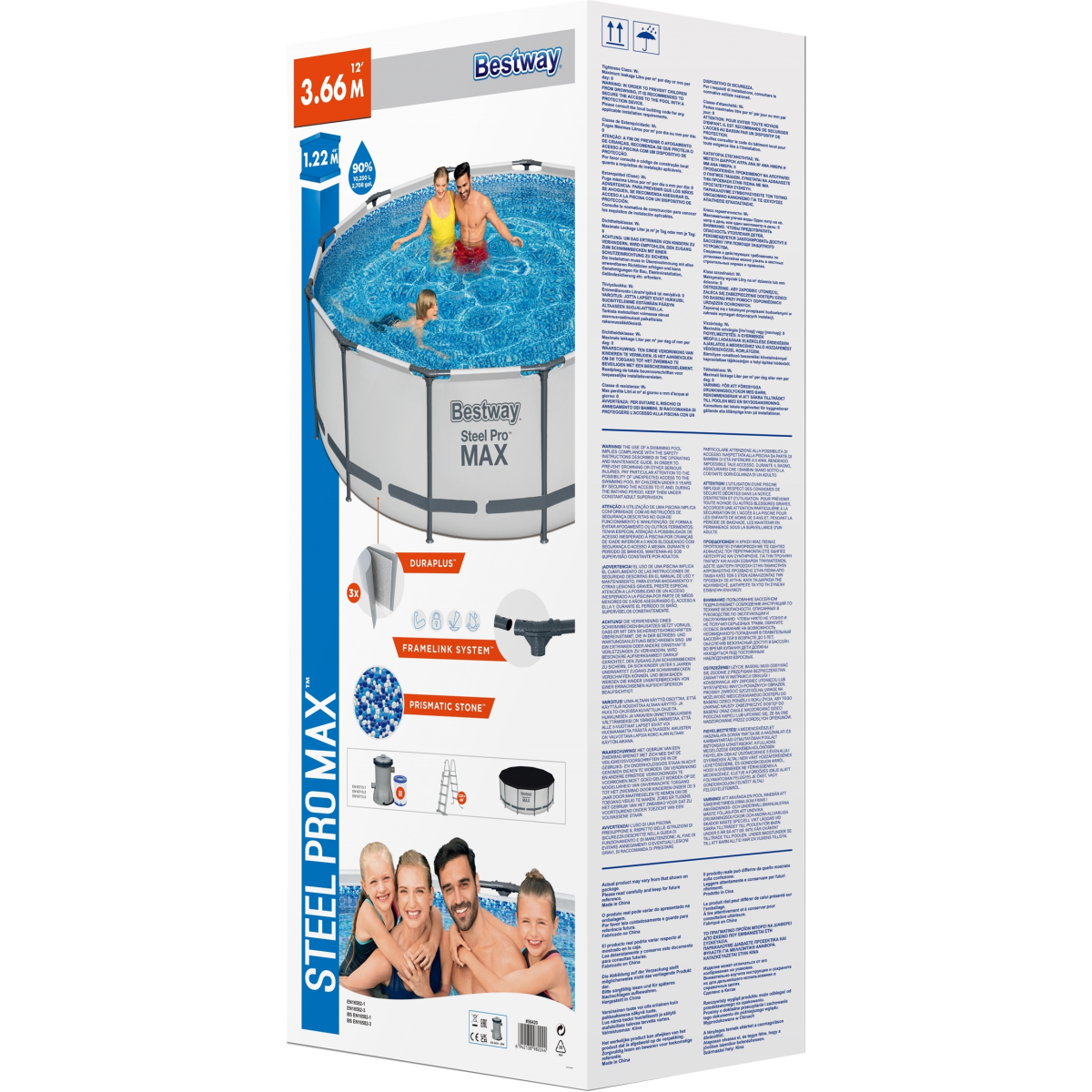 A Bestway Steel Pro Max Navagio medence tágas kialakítása és masszív szerkezete ideális választás a nyári kerti felfrissüléshez. A 366cm átmérőjű, kör alakú medence Tritech™ háromrétegű anyagból készült oldalfalai hosszabb élettartamot és nagyobb ellenállást biztosítanak – a poliészter hálóval megerősített PVC rétegek robusztus felépítést tesznek lehetővé.