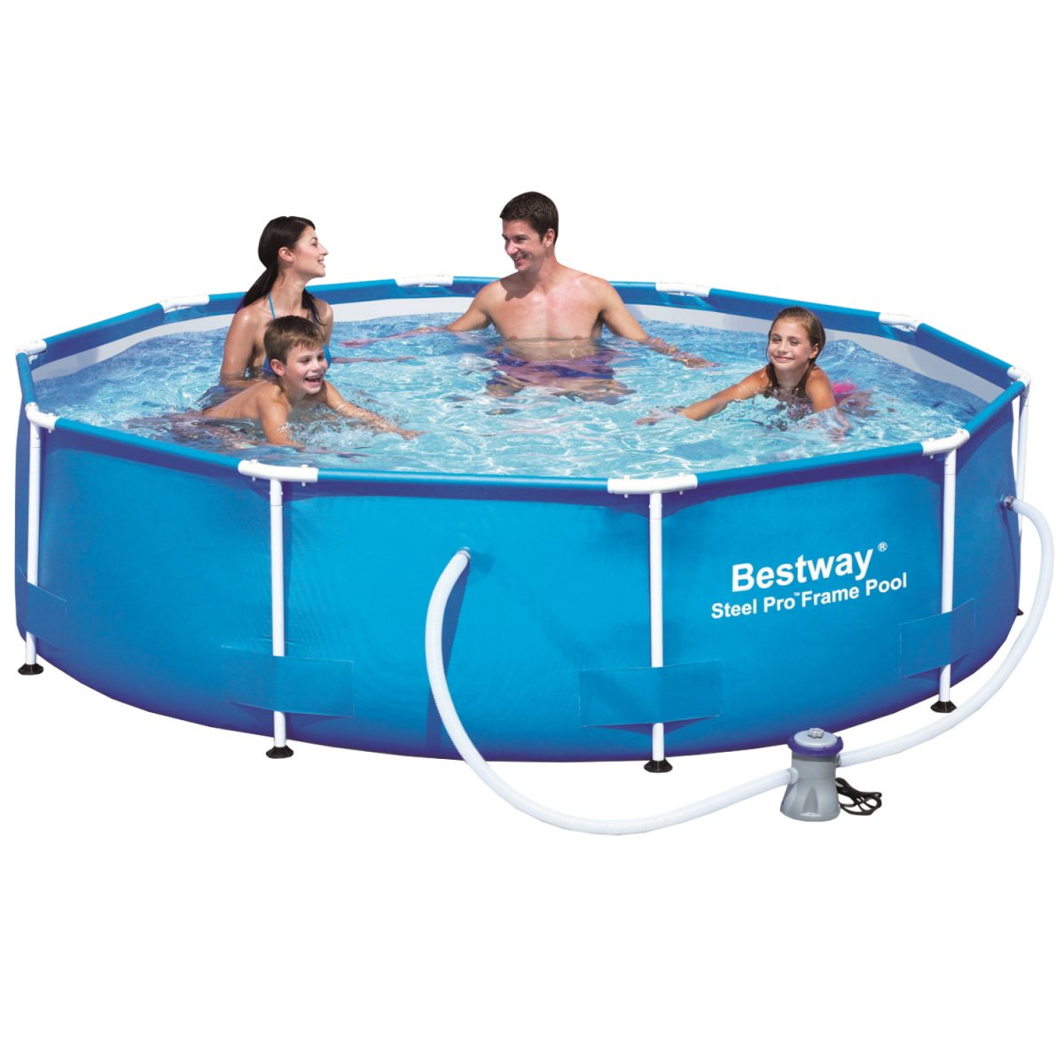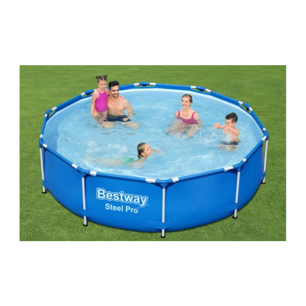 A háromrétegű, fémszállal megerősített PVC test és a korrózióálló fémvázas szerkezet stabilitást biztosít. A mellékelt papírszűrős vízforgató tisztán tartja a vizet, míg a szezon végén a leeresztőszelep segítségével egyszerűen elvezethető a medencéből a víz.