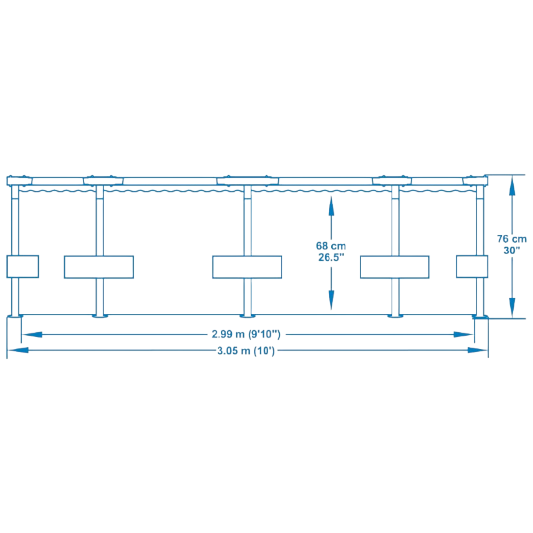 A Bestway Maui csővázas medence szett ideális választás azok számára, akik megbízható, könnyen kezelhető kerti medencét keresnek. A 305 cm átmérőjű, 76 cm magas medence vízkapacitása (90%-os töltésnél) 4678 liter, így kisebb családok vagy baráti társaságok számára is megfelelő.
