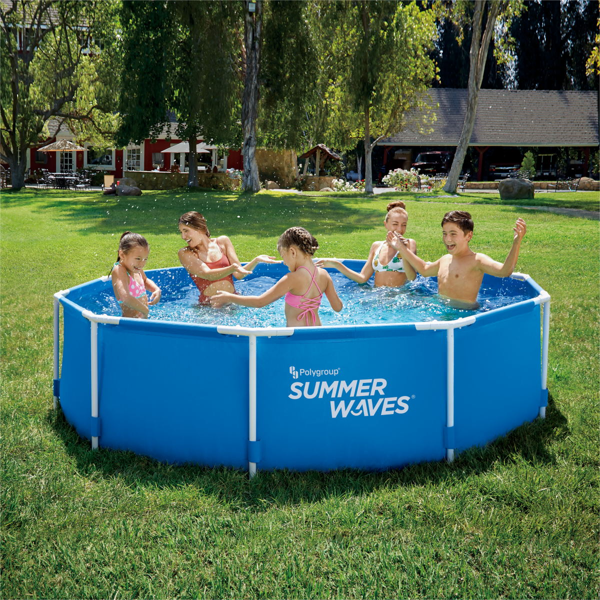 A Summer Waves fémvázas medence szett a kör alakú medence mellett filteres szűrő-vízforgató berendezést is tartalmaz.