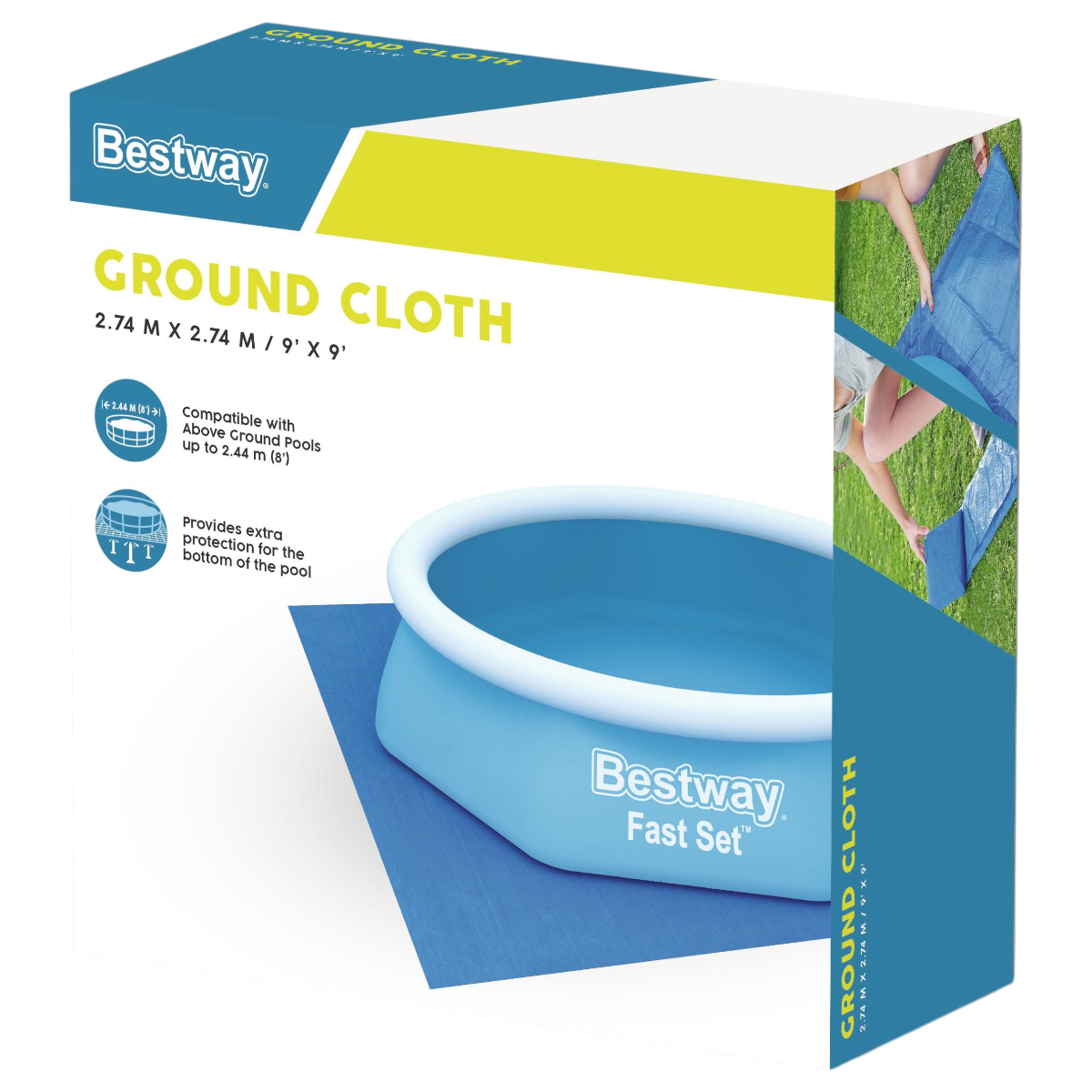 A Bestway 274×274 cm-es PVC alátét fólia praktikus kiegészítője a 244 cm átmérőjű föld feletti medencéknek. Megóvja a medence alját a kavicsoktól, egyenetlen talajtól és nedvességtől, így hozzájárul a medence hosszabb élettartamához és biztonságosabb használatához.