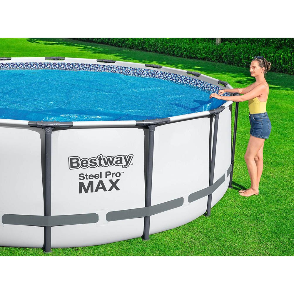 Ez a 356 cm-es átmérőjű Bestway szolártakaró ideális választás 3,66 méteres, kerek formájú medencékhez. A speciális anyagból készült takaró segít a napenergia hasznosításával felmelegíteni a medence vizét, miközben csökkenti a hőveszteséget, különösen az éjszakai órákban. Emellett jelentősen mérsékli a medencébe hulló szennyeződések – például levelek, rovarok – mennyiségét.
