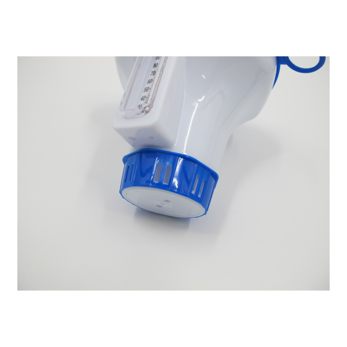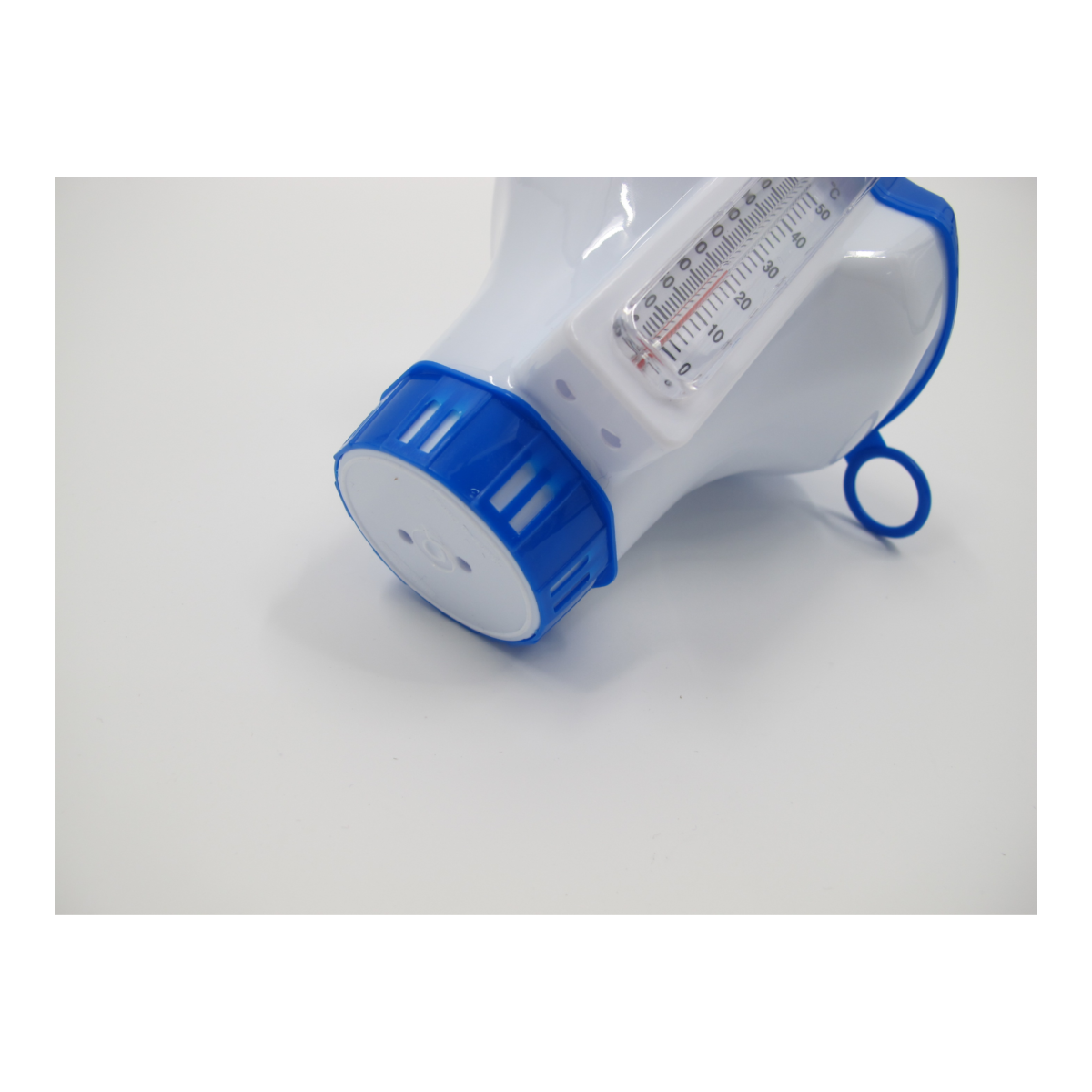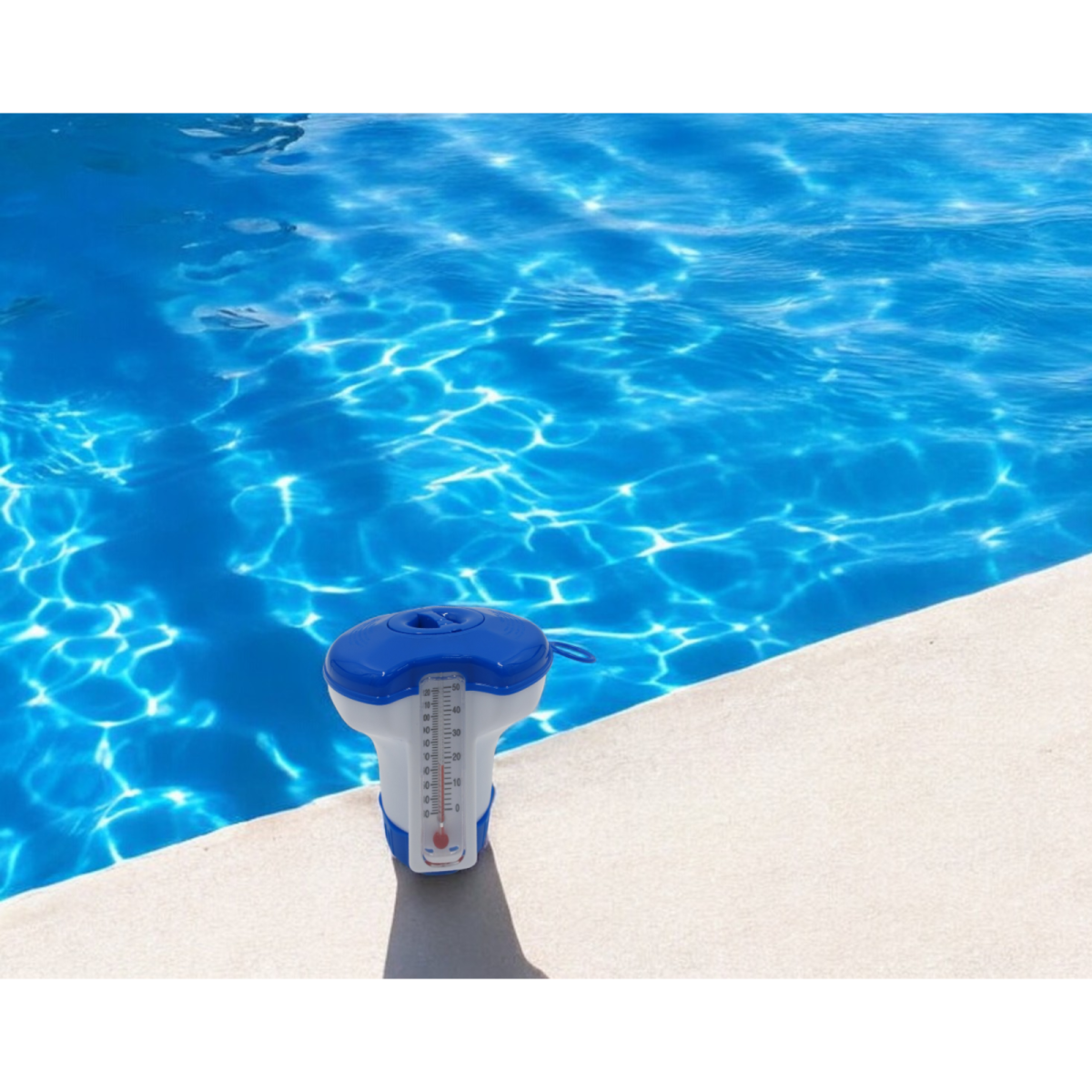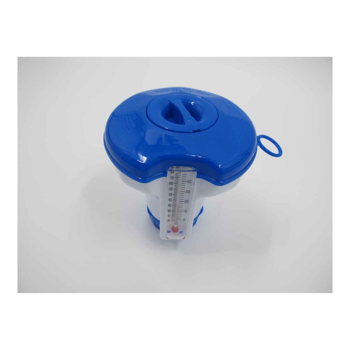 Ez a praktikus, úszó vegyszeradagoló nemcsak a víz folyamatos fertőtlenítéséről gondoskodik, hanem a beépített hőmérő segítségével a víz hőmérsékletének nyomon követését is lehetővé teszi. Kompakt méretének köszönhetően ideális választás kisebb méretű kerti medencékhez, 20 grammos vegyszertabletták használatával.