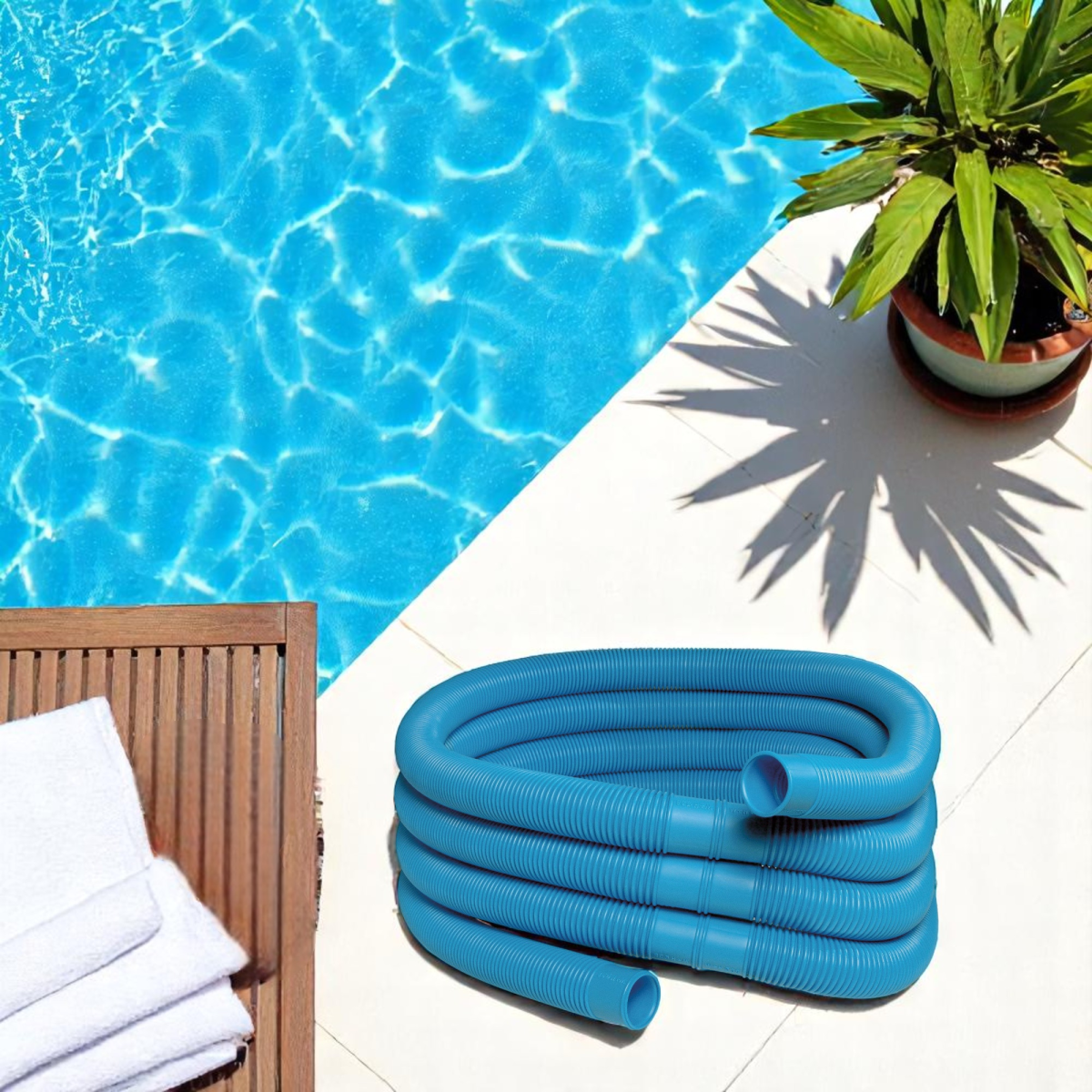 A Pooltrend flexibilis medencetömlő praktikus megoldás a medence tisztításához és porszívózásához. A 32 mm-es átmérőjű, 1 méter hosszú tömlőelemek egyedi méretre vághatók, így pontosan a szükséges hosszban állíthatók össze. A strapabíró műanyag tömlő jól bírja a klóros vizet, UV-álló, és ellenáll akár 1,5 bar üzemi nyomásnak is.