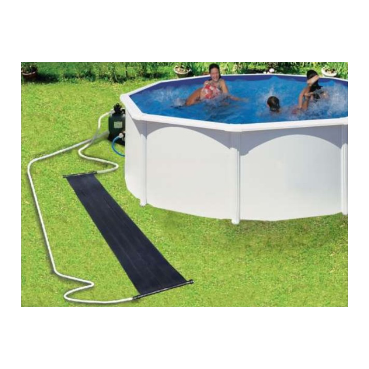 A Pooltrend 300×35 cm-es szolárszőnyeg ideális választás földfeletti medencékhez, ha néhány fokkal szeretnéd megemelni a vízhőmérsékletet villamos energia felhasználása nélkül. A szolárfűtés vékony csöveiben keringő víz a napsütés hatására felmelegszik, így természetes úton javul a fürdőzés komfortja. Egyszerűen felszerelhető, és akár 4 darab is összekapcsolható a hatékonyabb működés érdekében.