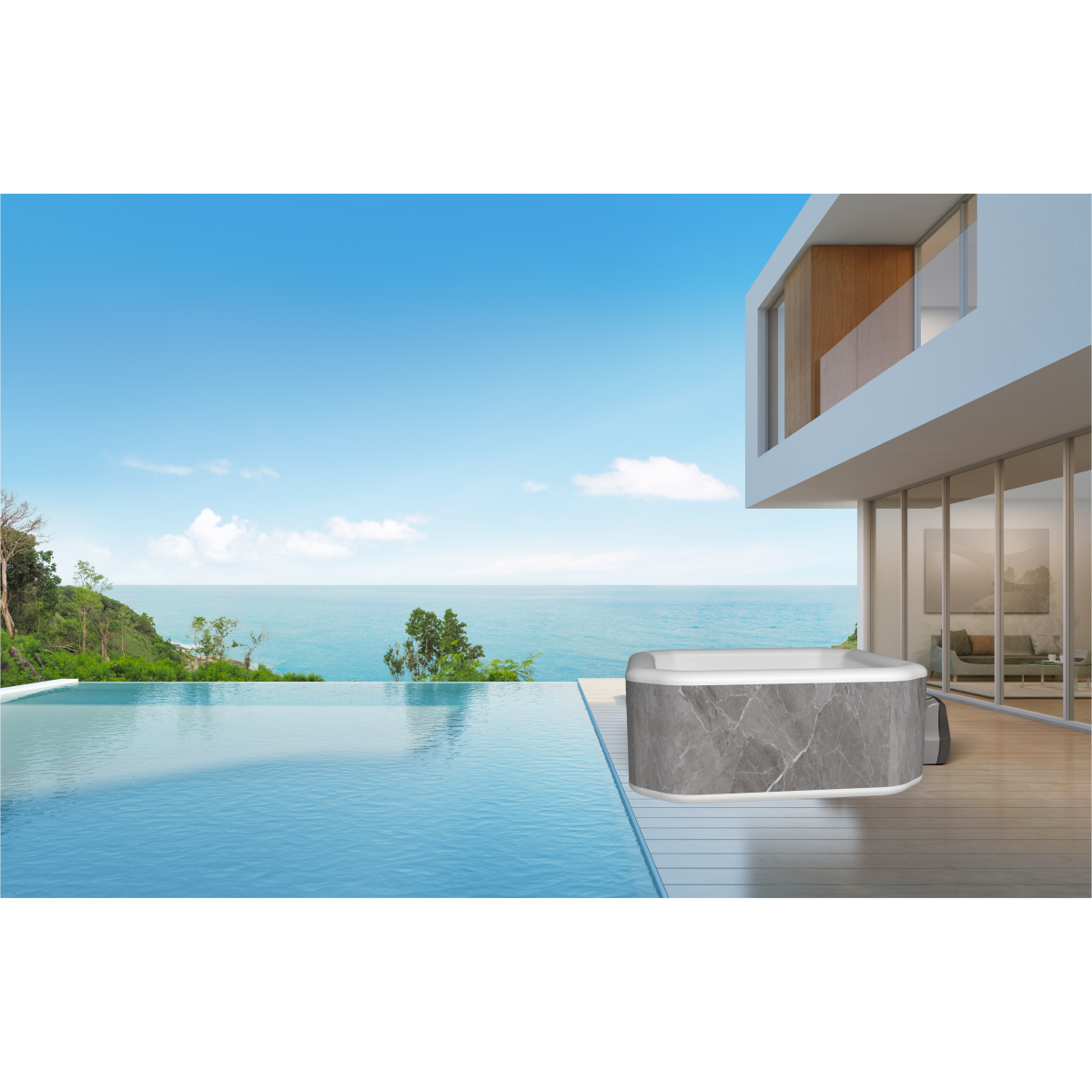Az Avenli Bergen masszázsmedence kompakt méreteivel és modern megjelenésével ideális választás kisebb családok vagy párok számára. A szürke márványminta letisztult, stílusos megjelenést kölcsönöz a jakuzzinak, amely minden kültéri vagy beltéri környezetbe jól illeszkedik. A prémium Drop Stitch technológiának köszönhetően az oldalfalak extra merevséget biztosítanak, mégis keskenyek maradnak – ez a technológia a motorcsónakok és SUP deszkák világában is bizonyított.