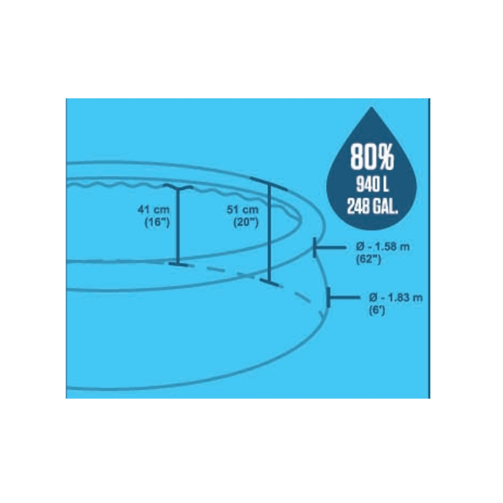 A Bestway Lupa medence ideális választás kisebb kertekbe vagy családoknak, akik gyorsan és egyszerűen szeretnék megoldani a nyári felfrissülést. A 183×51 cm-es méretű, 940 liter kapacitású, puhafalú medence karimája felfújható, így a víz feltöltése után önmagát megtartja – különösebb szerelést nem igényel.
