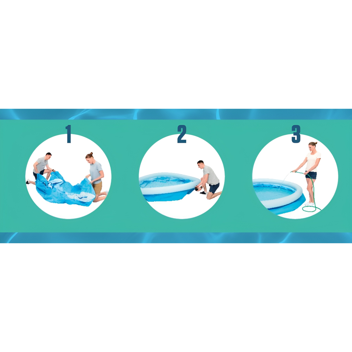 A Bestway Korfu puhafalú medence ideális választás azoknak, akik egyszerűen és gyorsan szeretnének otthon pancsolni. A 3.800 literes medence extra erős, 3 rétegű PVC testtel készül, amely ellenáll a napsugárzásnak és a vegyszerek hatásainak. Felfújható felső peremének köszönhetően a felállítása nem igényel sem szerszámot, sem szakértelmet – néhány perc alatt készen áll a víz feltöltésére.