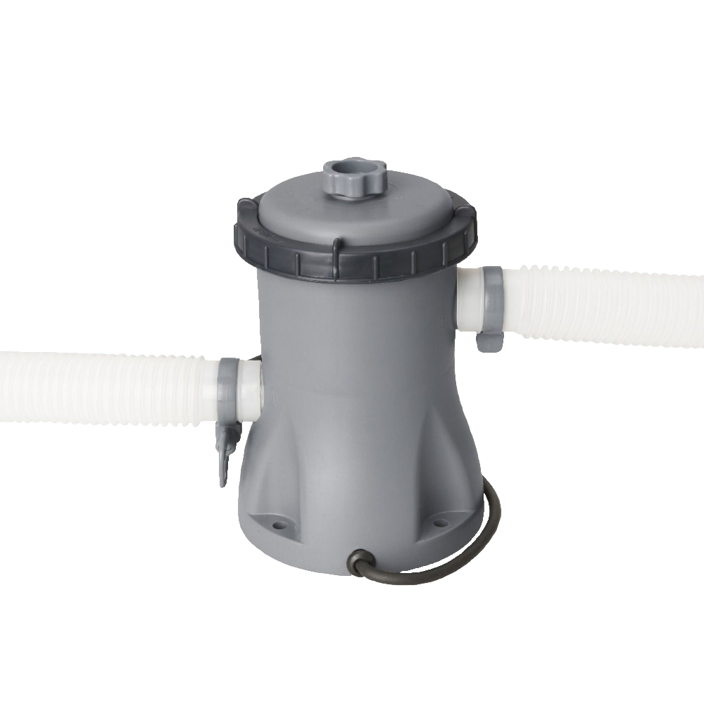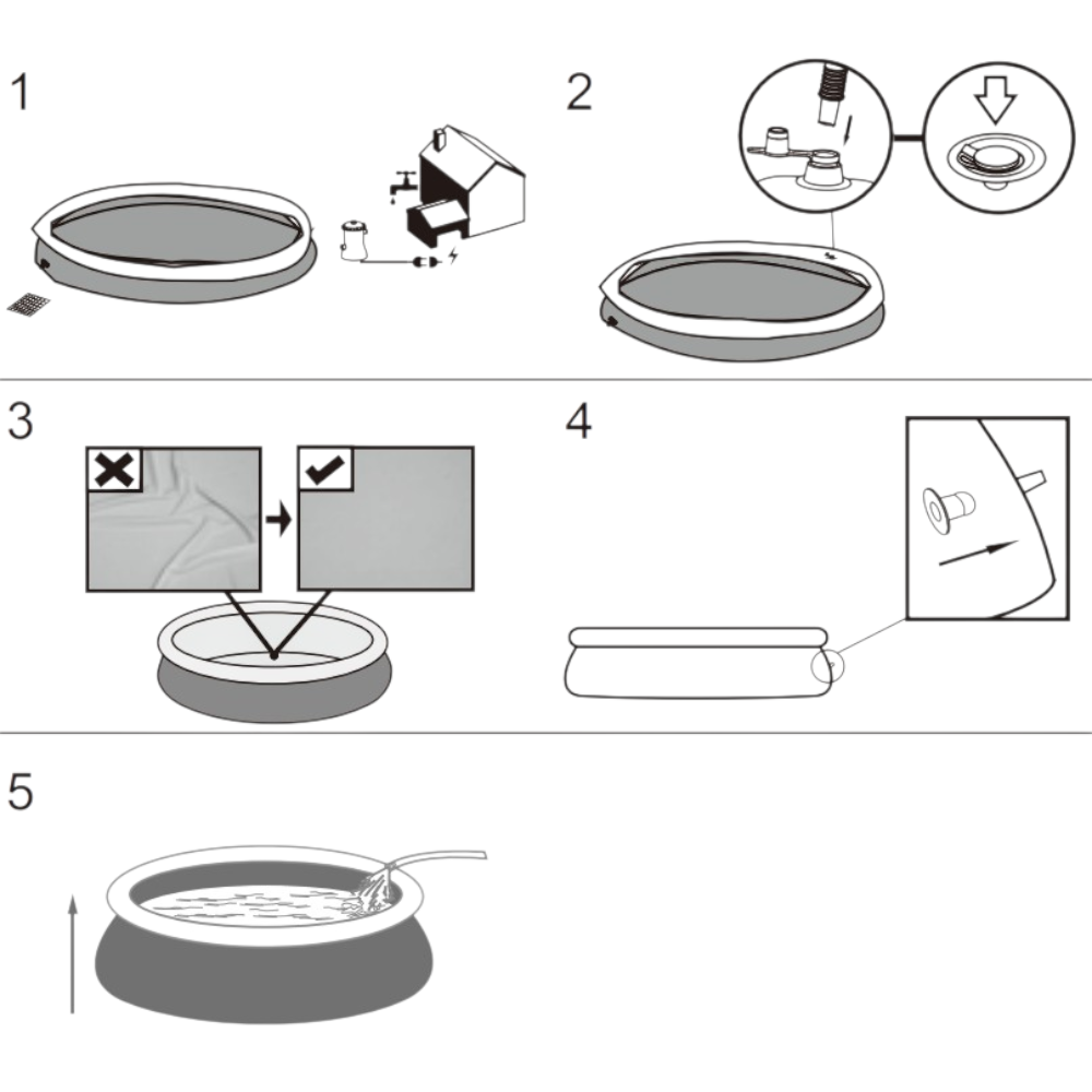 A medence fala tartós PVC fóliából készült, amely ellenáll az UV sugárzásnak és a vízkezelő vegyszereknek. A csomag tartalmaz egy vízforgató szivattyút szűrőpatronnal, amely keringeti és szűri a medence vizét – így hosszabb ideig tisztán tartható.