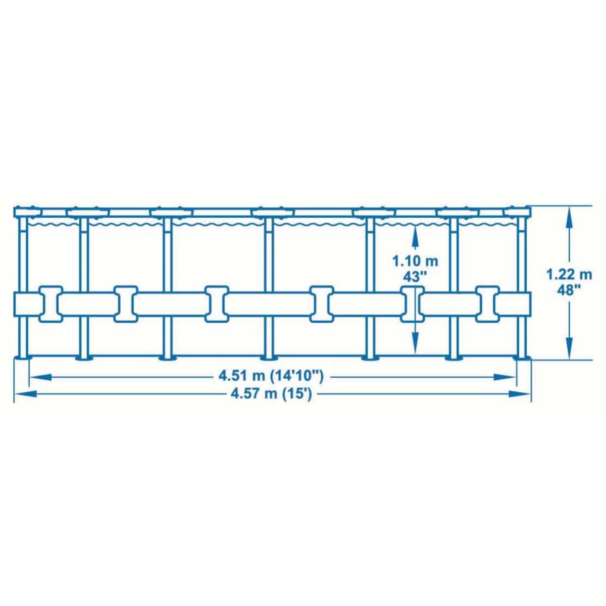 A Calabria medence 457×122 cm-es méretével kényelmes fürdőzést biztosít az egész család számára. A háromrétegű, DuraPlus™ anyagból készült oldalfal nagyobb ellenállóképességet nyújt, a belső Prismatic Stone™ dekoráció pedig vizuálisan is kiemeli a medence formáját és színét. A kör alak nemcsak modern megjelenést ad, hanem praktikus megoldás a telepítés és a térkihasználás szempontjából is.