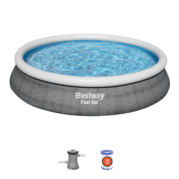 A medence fala extra erős PVC fóliából készült, ami ellenáll az UV sugaraknak és a vízkezelő vegyszereknek. Könnyen, gyorsan telepíthető, a medencetest karimáját felfújva pedig azonnal megkezdhető a víz feltöltése. Az egyszerű vízelvezetéshez a beépített áramlásszabályozó leeresztő szelep kerti tömlőhöz csatlakoztatható. A nyári időszak utáni szétszerelése pedig szintén csak pár mozzanat. A szett tartalma: rattan mintázatú medence, szűrőszivattyú.