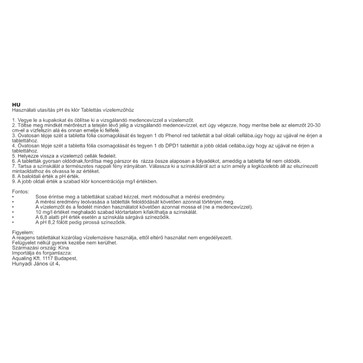 ✅ Egyszerű használat – tablettás reagenssel gyors mérés