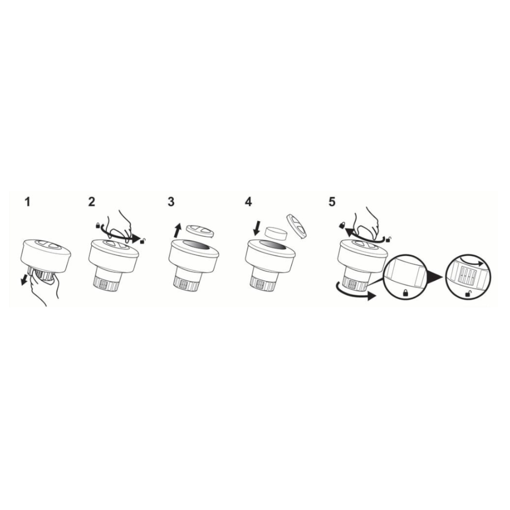 Ez az úszó vegyszeradagoló ideális megoldás a medencevíz klórozására. Lassan oldódó fertőtlenítőszer-tabletták behelyezésével biztosítható a folyamatos vízkezelés. A forgatható alsó karima segítségével szabályozható a vegyszer oldódásának üteme, így könnyedén hozzáigazítható a vízterheléshez és hőmérséklethez is.