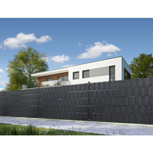 PVC tekercs, hajlékony, profilozott, időjárásálló, nem átlátszó, felszerelhető minden hálós kerítésre és kapura. Az egyszerű szövési technikával egyedileg kombinálhatók, az egyes műanyag csíkokat ollóval a kívánt hosszúságúra lehet vágni. A csomag 5 szalagot tartalmaz.