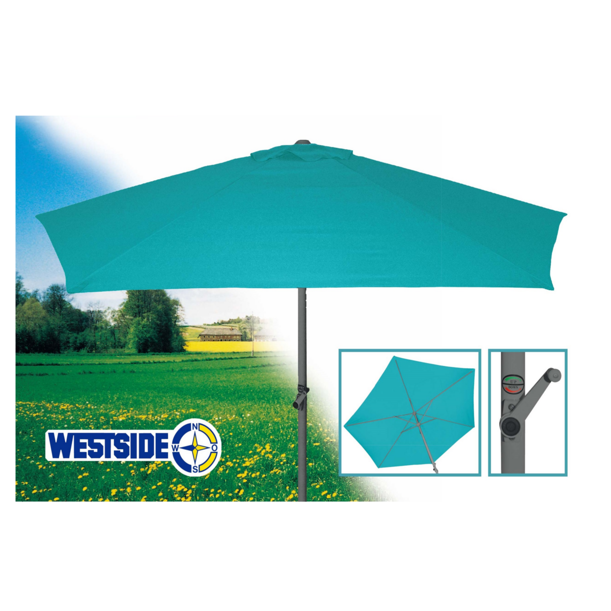Kurblis napernyő, alu vázas, poliészter huzat 160g/m2, türkiz 300cm