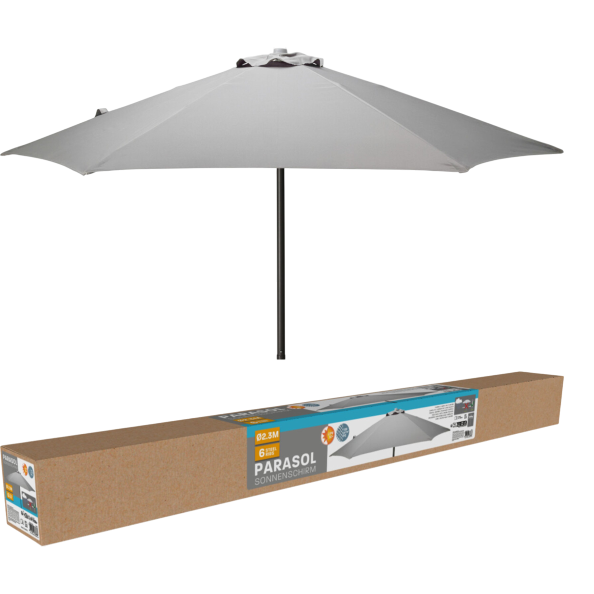 Ez a 225×230 cm-es, világosszürke napernyő praktikus választás teraszra, kertbe vagy az erkélyre, ahol fontos a nap elleni védelem és a kellemes árnyék biztosítása. Poliészter ernyőanyaga könnyű, mégis jól bírja a mindennapi kültéri használatot, az acél váz pedig stabil tartást ad. UPF 30+ besorolása révén mérsékelt UV-védelmet is nyújt a napsütéses időszakokban.