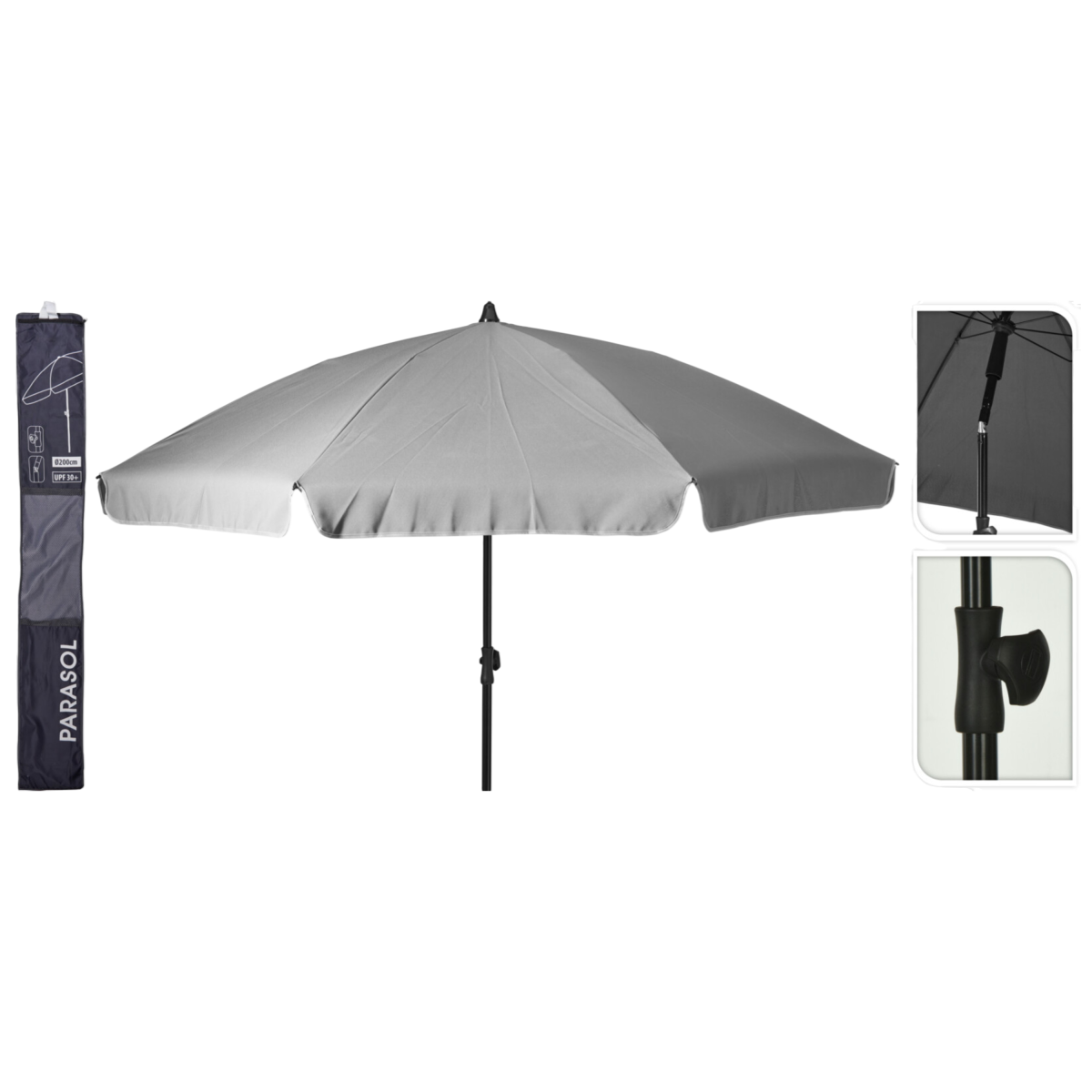 Ez a 235×200 cm-es szürke napernyő praktikus árnyékolási megoldást kínál teraszra, kertbe vagy erkélyre. Poliészter anyagú ernyőfelülete fényvédelmet biztosít (UPF 30+), a dönthető acélváz pedig lehetővé teszi, hogy a napszög változásához igazítsd az árnyékot. A mellékelt hordtáska megkönnyíti a szállítást és tárolást, így bárhová könnyedén magaddal viheted.