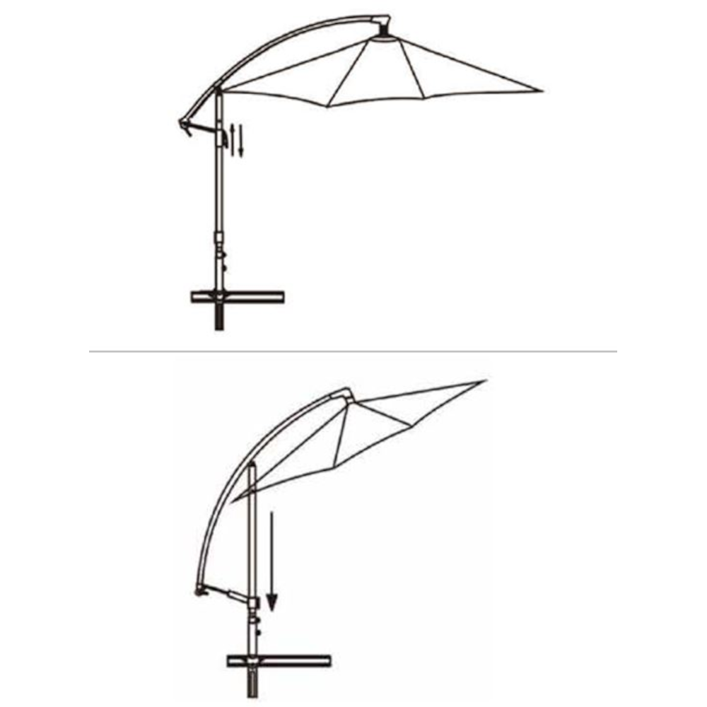 A napernyő egyszerűen összeszerelhető. A stabil használathoz megfelelő súlyú napernyőtalp alkalmazása javasolt. A kézi tekerőkar segítségével az ernyő könnyedén nyitható és zárható.