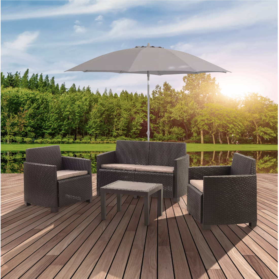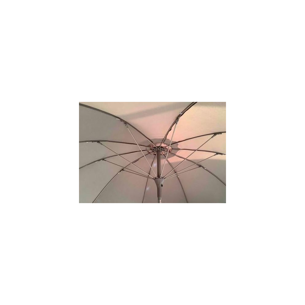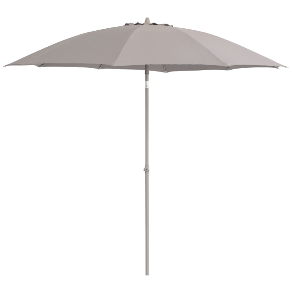 270 cm-es napernyő, taupe színű huzattal, 180g/m2 poliészter anyagból, vízlepergető kikészítéssel. A tartórúd dönthető, porszórt alumíniumból készült, 8 mm-es üvegszál erősítésű merevítő bordákkal. Pompás kiegészítője lehet akár kerti ülőgarnitúrájának. Ezen napernyő segítségével nem okoz majd gondot a napsugárzás, hogy kertünkben árnyékban pihenhessünk.