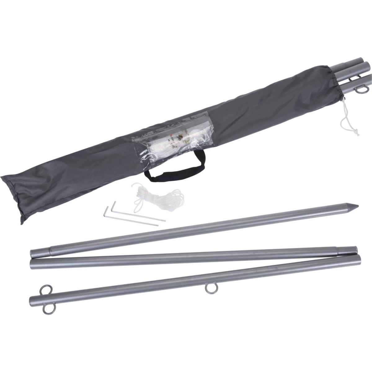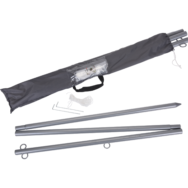 3 részből álló, 220 cm-es rúd, amely többek között árnyékolókendő vagy ponyva rögzítésére is alkalmas. A rúdhoz hordtáska, kötelek és csapok tartoznak.