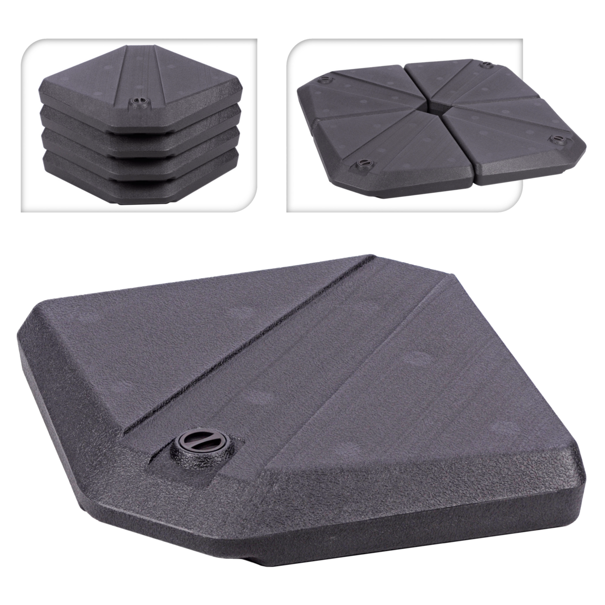 Napernyő tartó talp/esernyő tartó talp, polypropylene, fel lehet tölteni vízzel, ha feltöltjük kb: 16kg, antracit színű, mérete: 49x49x8.7cm. A termék ára 1db-ra vonatkozik, a képen látható 4-es csoportosítás példa a felhasználásra.