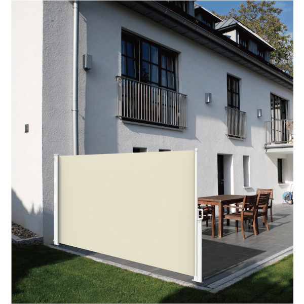 A Praktiker 1,5x3 m-es bézs függőleges napellenző praktikus és esztétikus megoldás, ha szabályozható oldalsó árnyékolást keresel kültéri területeken.
