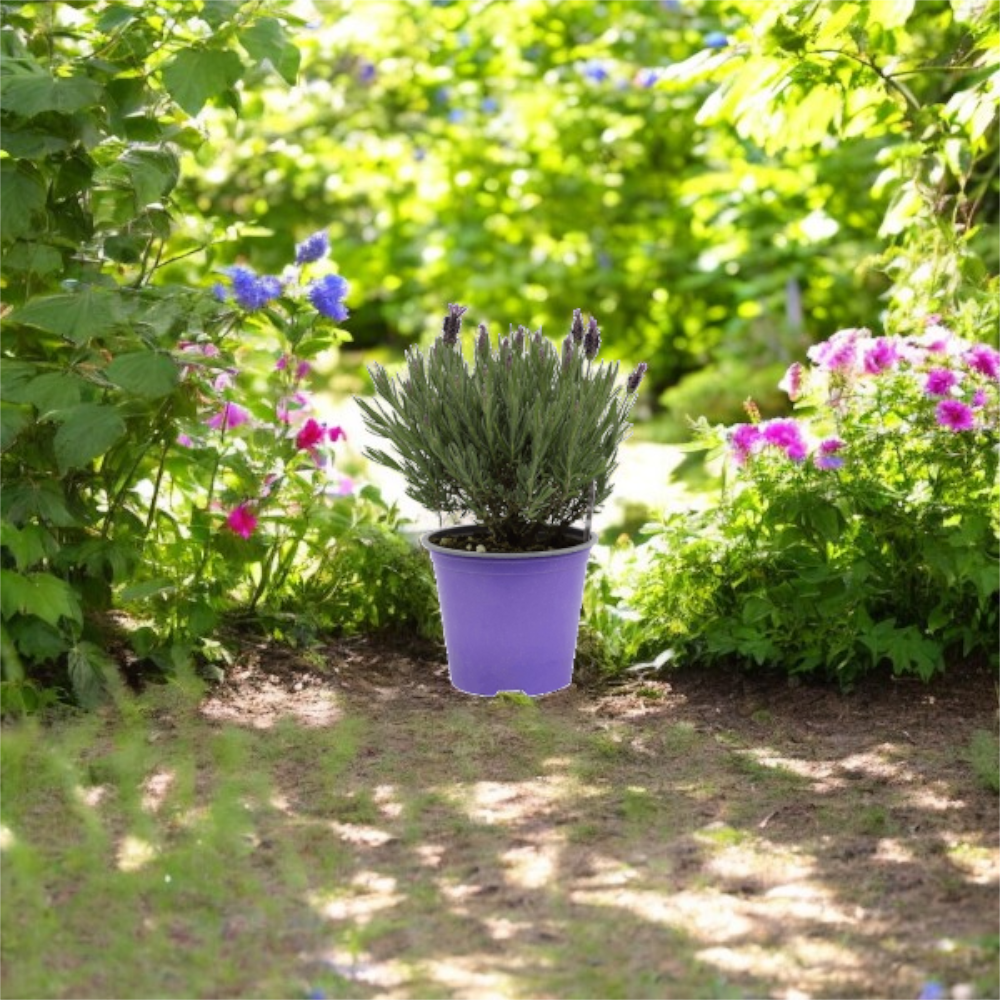 Levendula 14 cm színes cserépben.A levendula egy félcserje, amely kékes-ibolyakék virágainak és kellemes illatának köszönhetően nagy népszerűségnek örvend, dézsába is ültethető, de akár a kertbe is telepíthető.
