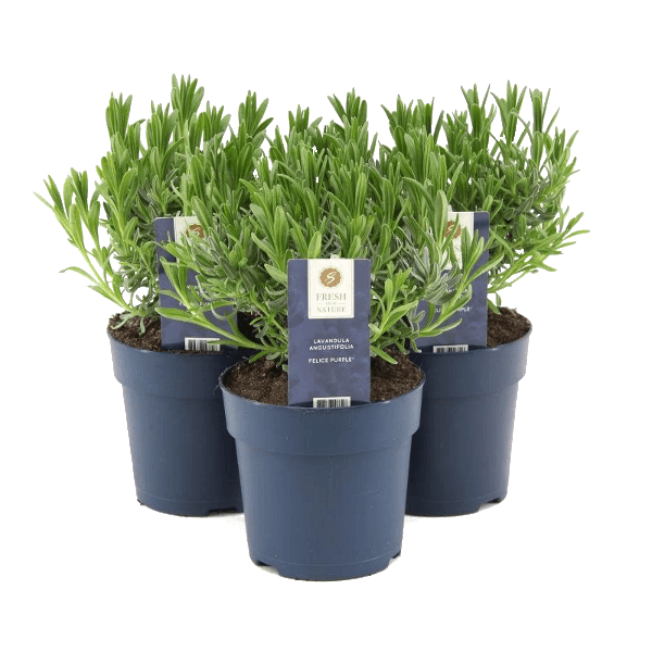 Levendula 4-es csomagolásban. A levendula egy félcserje, amely kékes-ibolyakék virágainak és kellemes illatának köszönhetően nagy népszerűségnek örvend, dézsába is ültethető, de akár a kertbe is telepíthető.