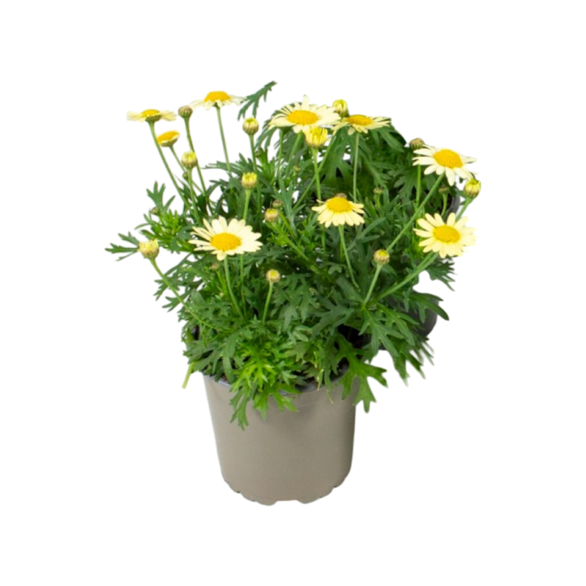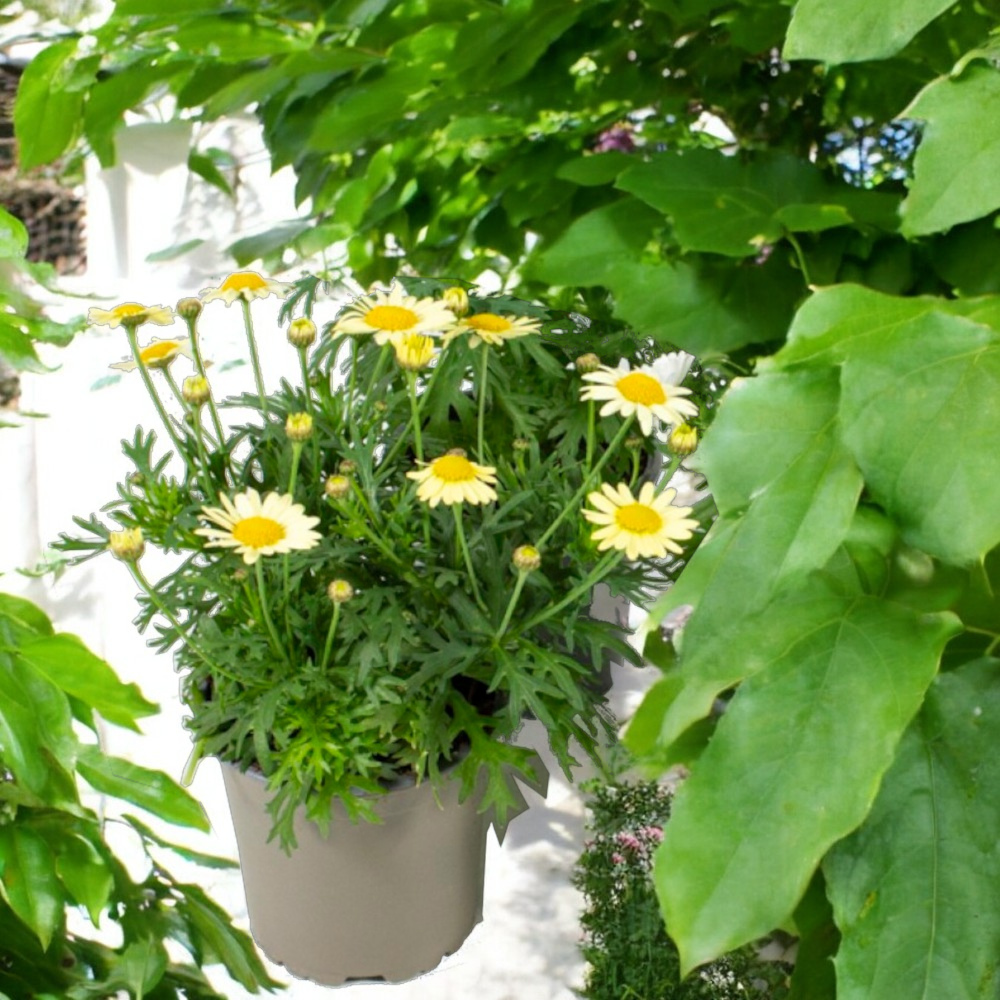 A Cserjés margitvirág 'Daisy' (Argyranthemum frutescens) egy gyönyörű, kompakt cserje, amely hosszú virágzási időszakkal és élénk fehér virágokkal díszíti a kertet. Ideális választás virágágyásokba, teraszokra és erkélyekre, hiszen jól tűri a napos helyeket és a szárazságot. A 'Daisy' változat különösen bőséges virágzással büszkélkedhet, és könnyen gondozható.