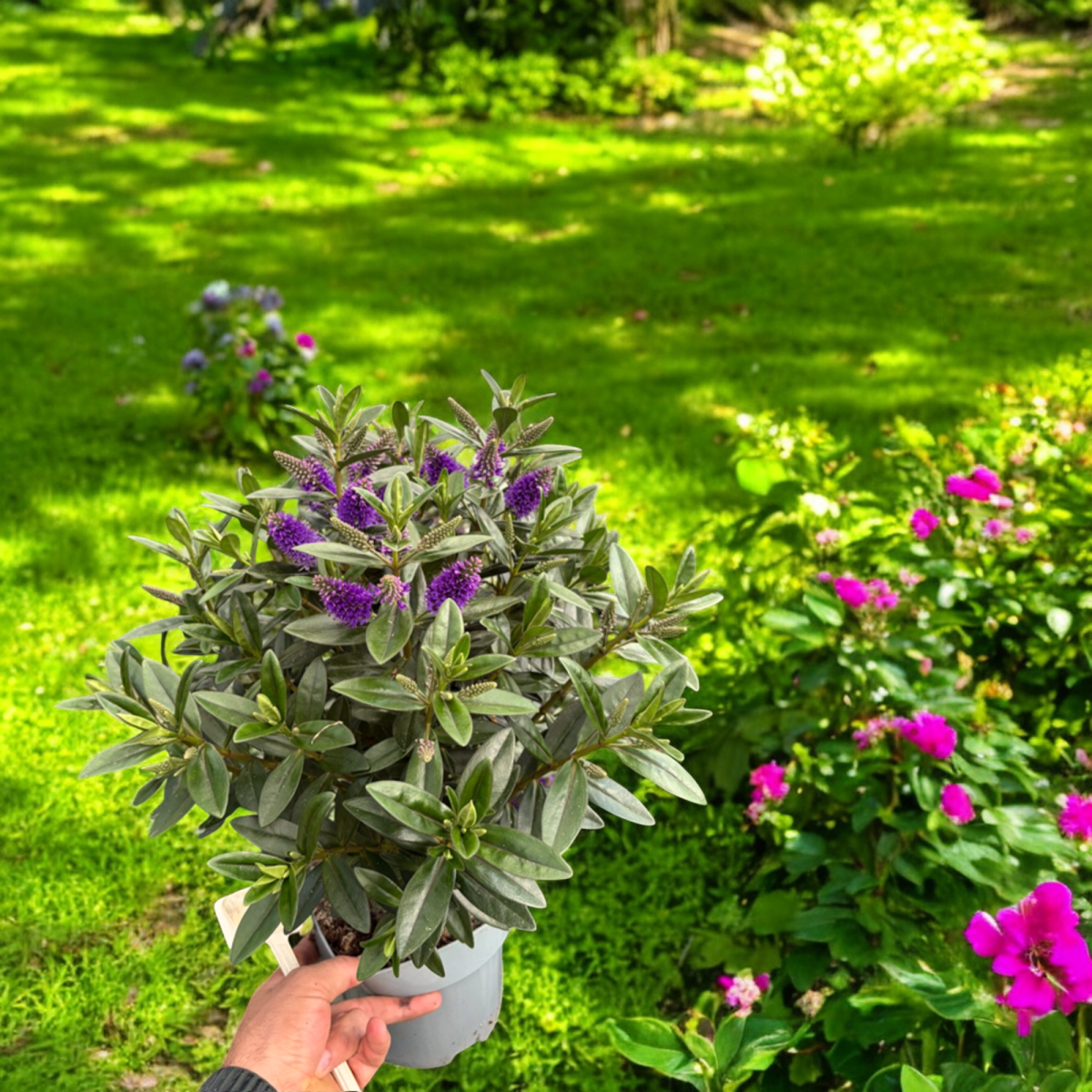 A veronikacserje (Hebe) mutatós, sűrű lombozatú és élénk színű virágaival díszíti a kerteket. Ez az évelő növény 17 cm átmérőjű cserépben érkezik, így ideális a terasz, erkély vagy kisebb kerti ágyások beültetésére is.