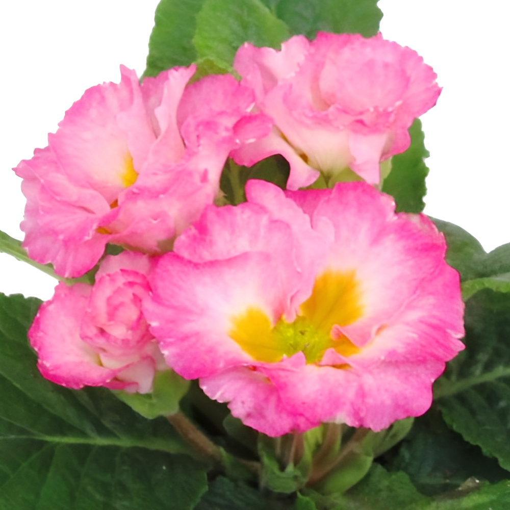 "Suzie" dupla virágú rózsaszín árnyalatú primula, cserép mérete 10,5 cm. Különleges kiegészítője lehet a kertnek, terasznak, vagy akár az erkélynek is. Félárnyékot kedvelő növény, így érdemes nem túl napfényes helyre tenni.