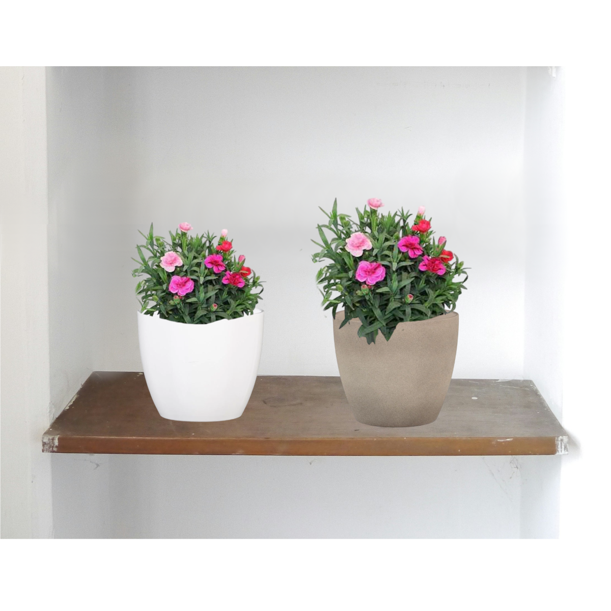 Cserepes szegfű 3 színű, trio. Előnyben részesítik a védett, lehetőleg napsütötte helyeket.Rendszeres öntözést igényel, de figyeljünk oda, és inkább gyakrabban mértékletesen öntözzük, mert a pangó nedvességet nem viselik el. A téli hideget akkor vészelik át, ha nagy mennyiségű talajjal van körülvéve a gyökérzetük. Az áttelelt növény a következő évben többet virágzik, és még erőteljesebben növekszik.